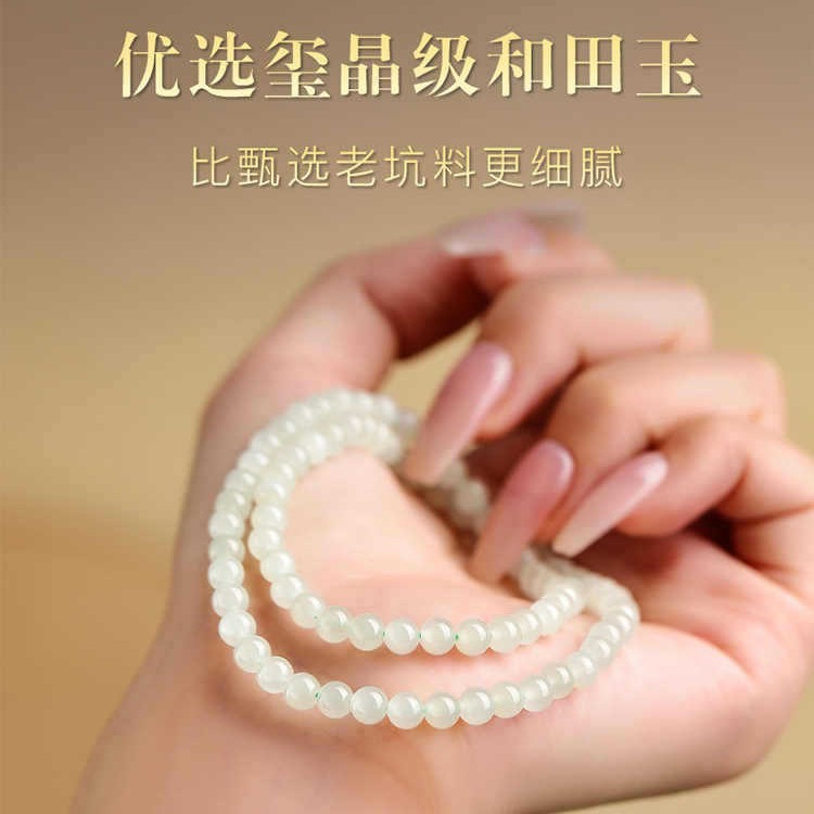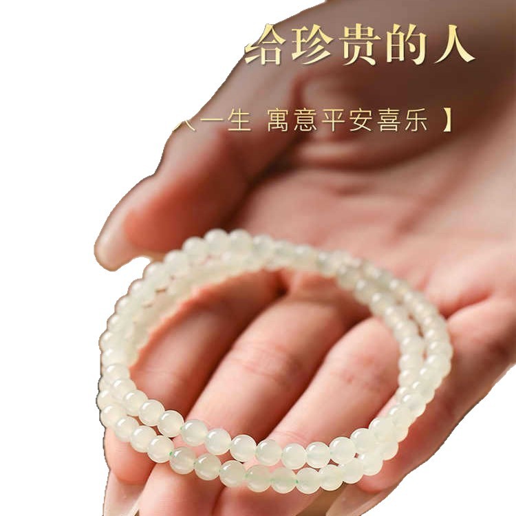正品新疆和田玉手链女生玉石多圈双圈冰晴水散珠串珠手链小众精致