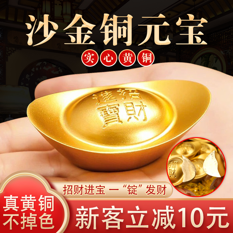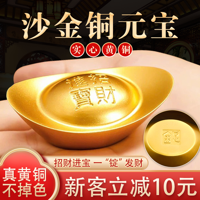 黄铜实心沙金元宝纯铜摆件道具客厅聚宝盆装饰品开业乔招财迁礼品