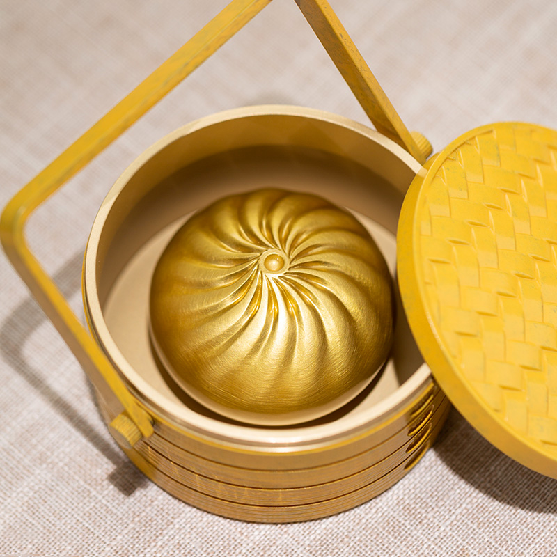 朱炳仁铜 蒸蒸日上小福包客厅桌面书房装饰品铜雕包子装饰摆件