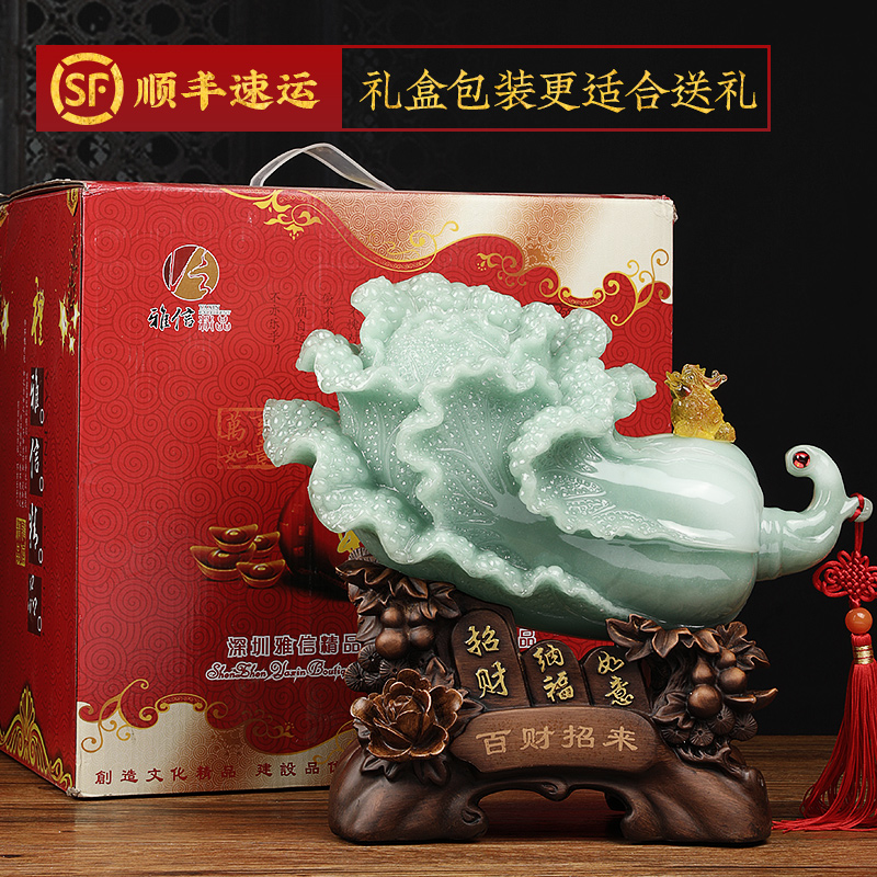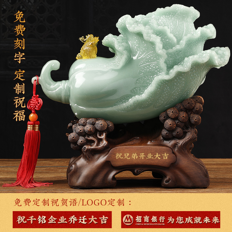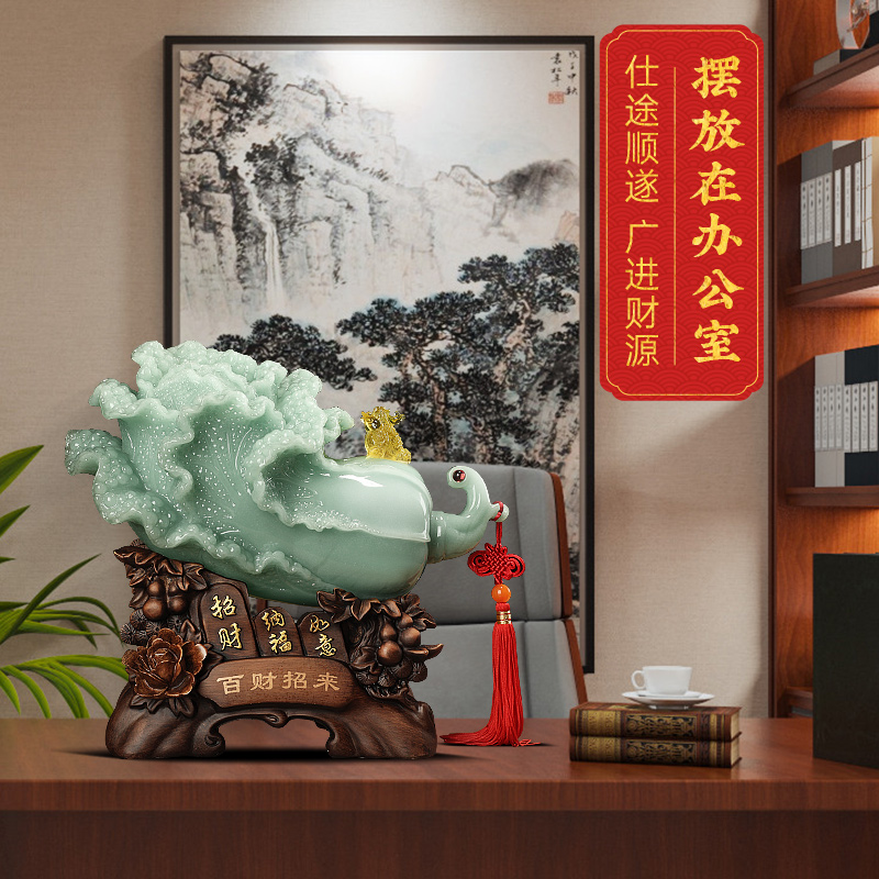百财招来b玉白菜摆件中式客厅酒柜玄关招财装饰品店铺开业乔迁礼