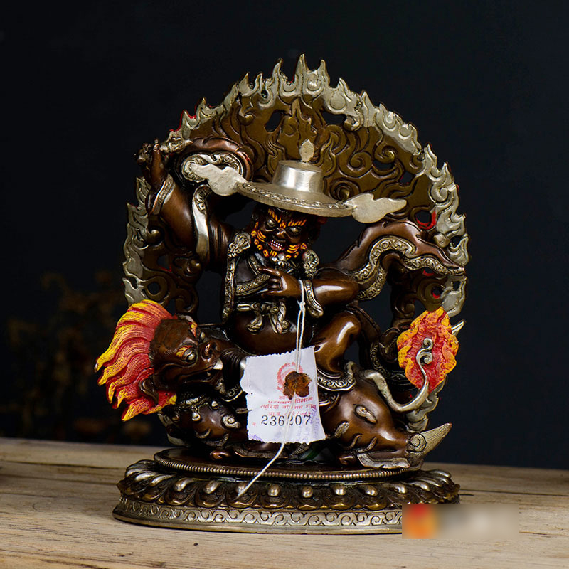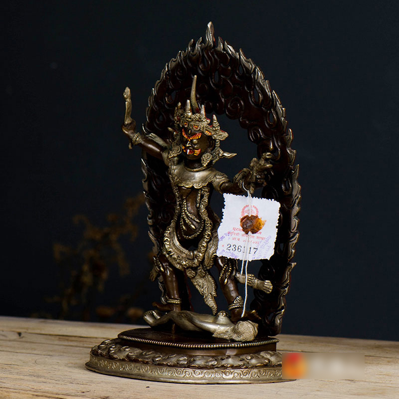 宁玛三根本佛铜摆件 尼泊尔手工紫铜镀银摆件 一髻佛母喇呼拉单坚