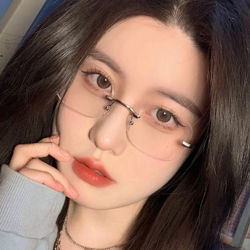 超轻纯钛无框近视眼镜女可配有度数素颜大框显脸小眼睛无边框镜架