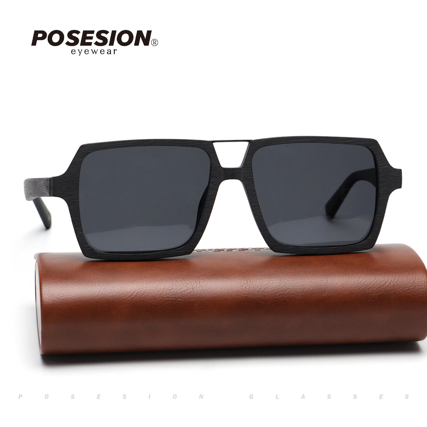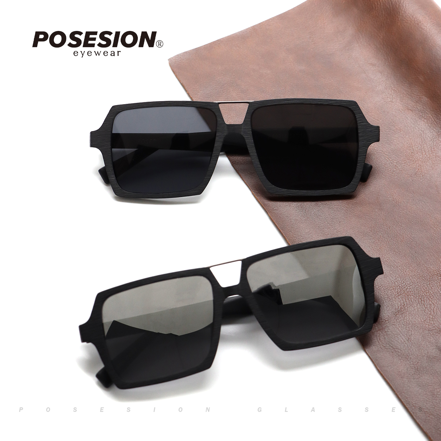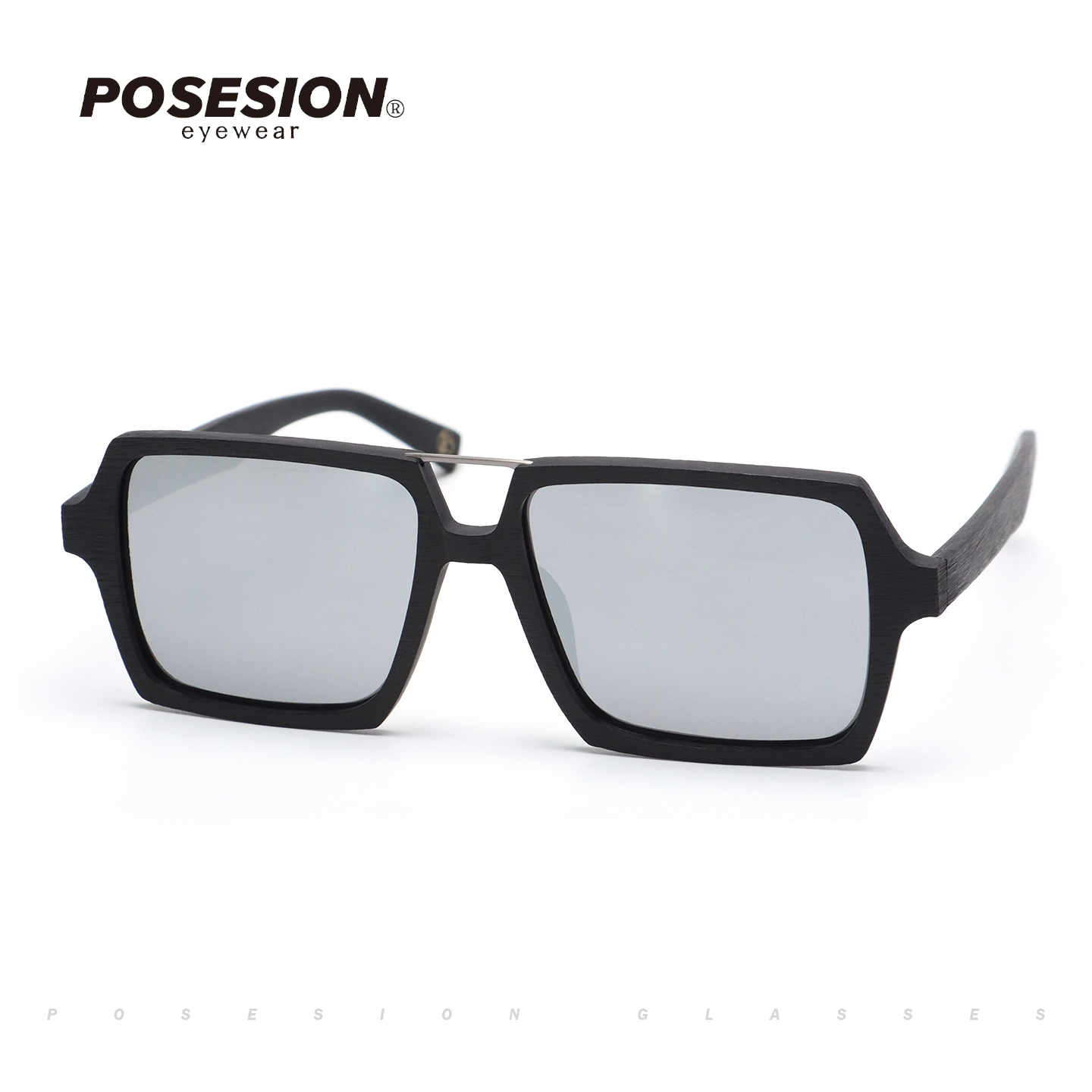 POSESION水银偏光太阳镜开车男反光木纹板材方形墨镜女可配近视潮