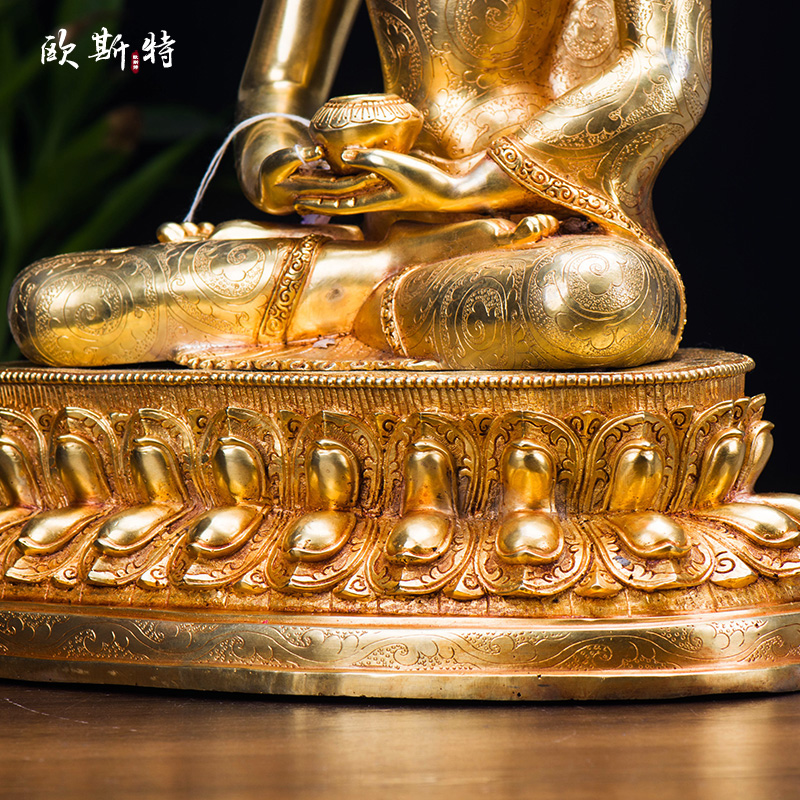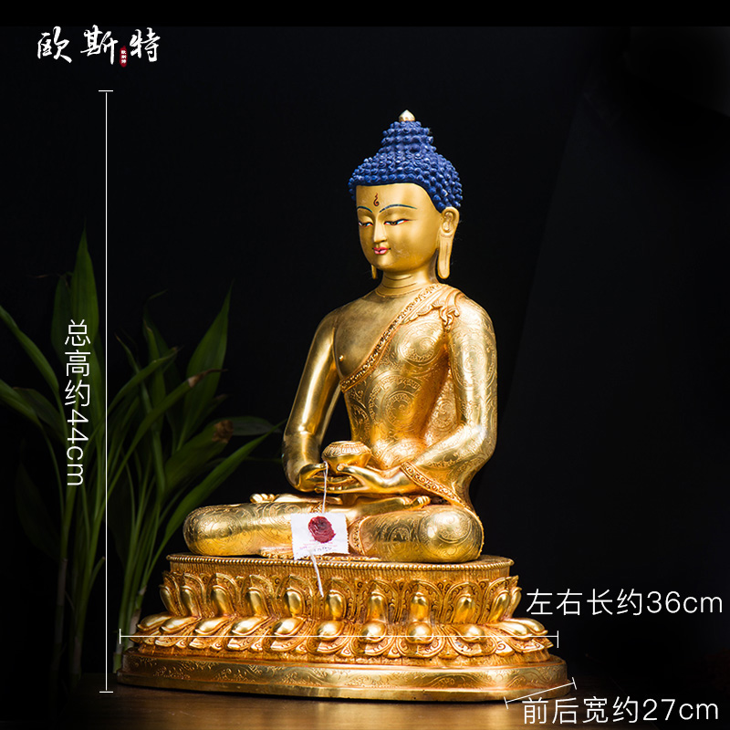 尼泊尔《阿弥陀佛铜像》乔迁新居玄关用品摆件15寸铜镀金手工摆件
