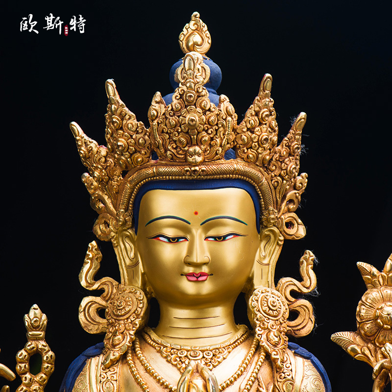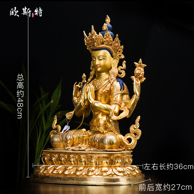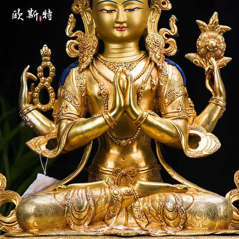 尼泊尔《四臂观音铜像》乔迁新居客厅用品摆件15寸铜镀金 观音像
