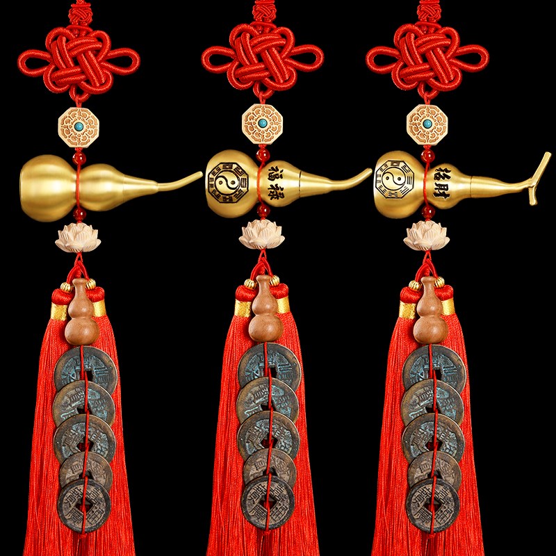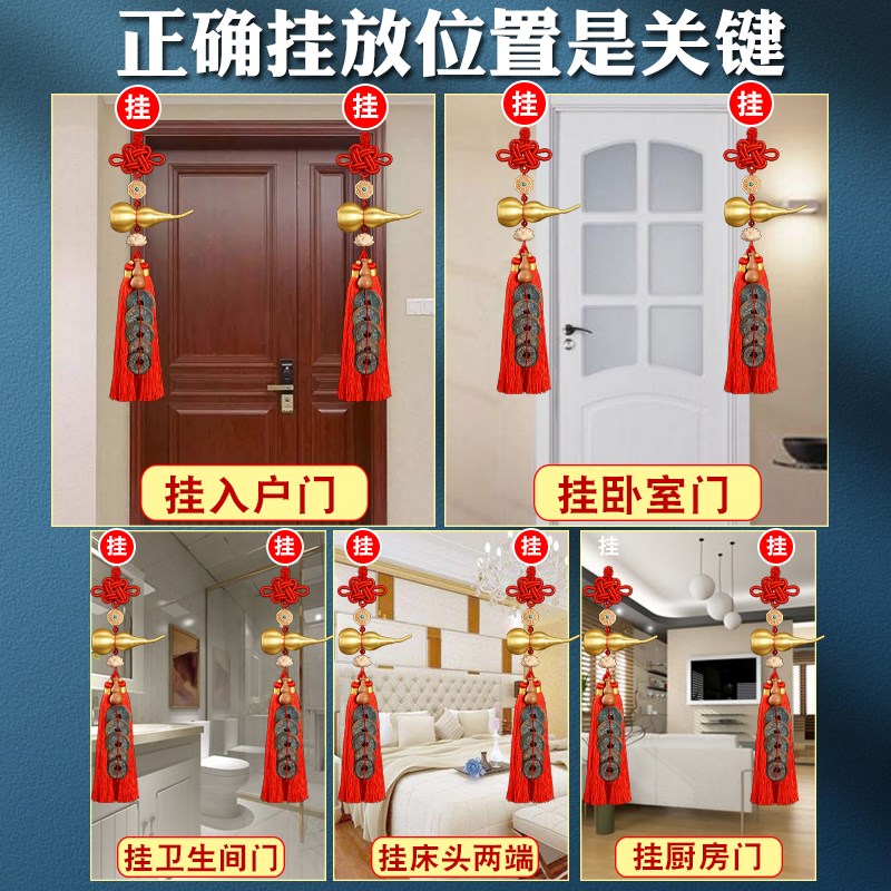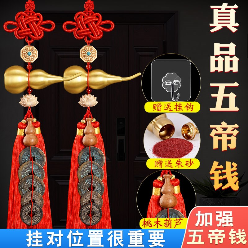 真品五帝钱门对门葫芦挂件纯铜入户门吉祥结铜钱串招财古币五吊钱