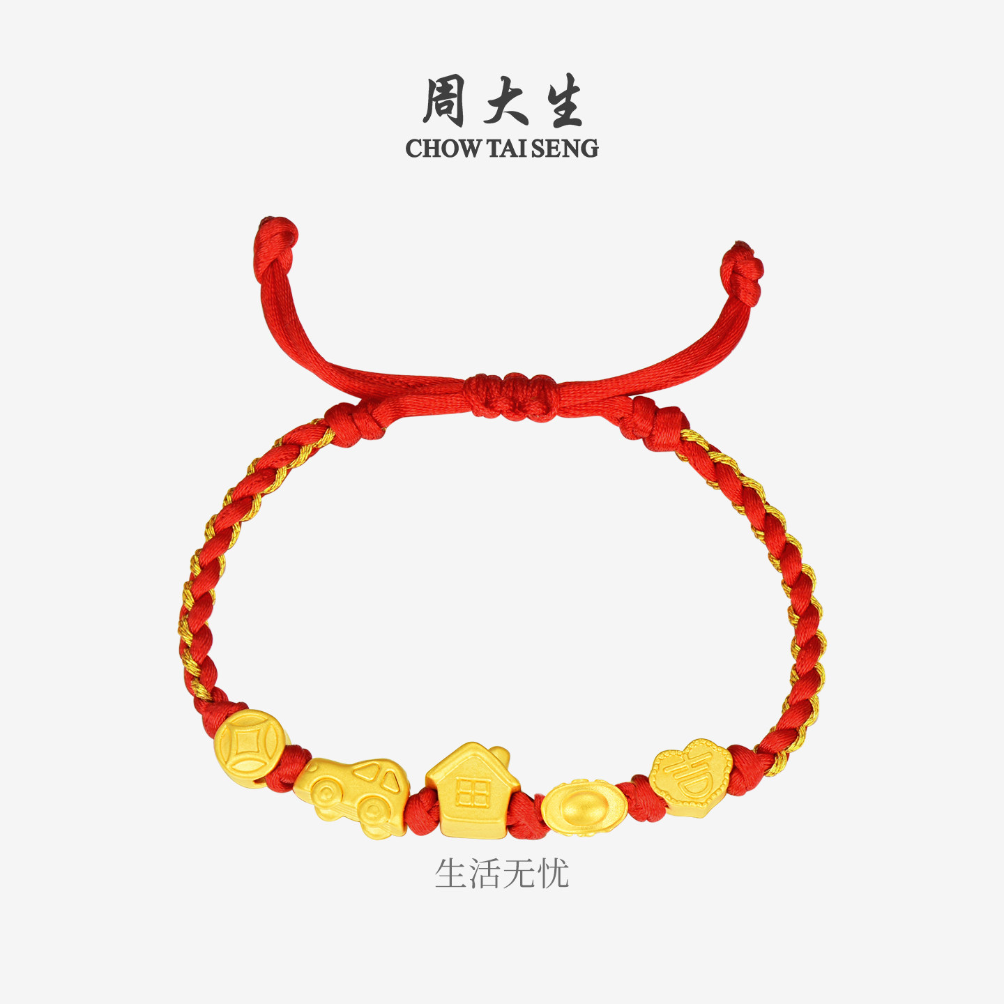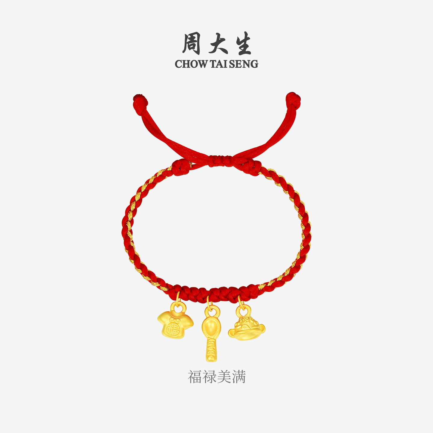 周大生吉祥三宝黄金宝宝手链3D硬金足金转运珠本命年儿童周岁礼