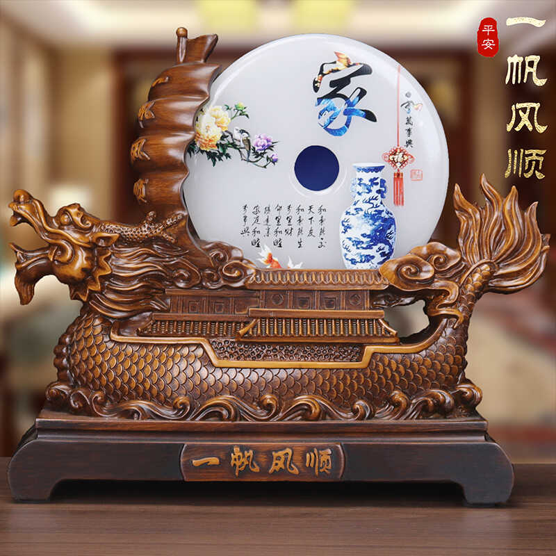 一帆风顺龙船帆船平安扣摆件招财公司店铺开业礼物办公室定制礼品
