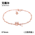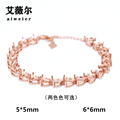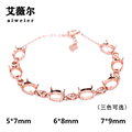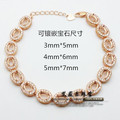 精工新款S925纯银镀白金手链空托玫瑰镶嵌设计定制百搭18k金3*4mm
