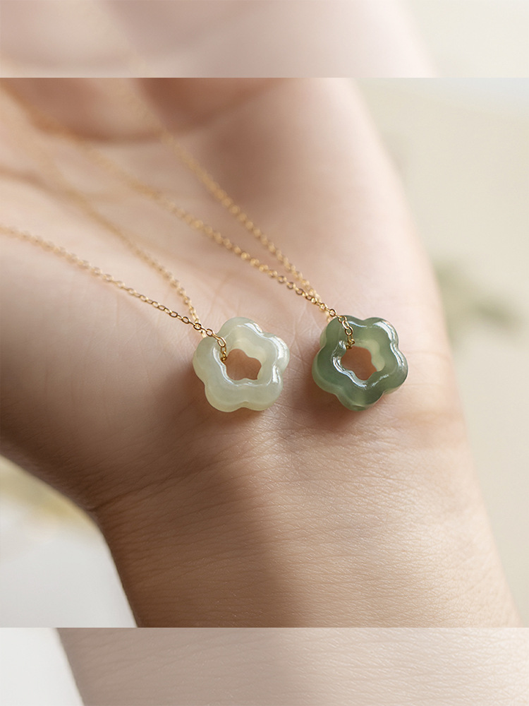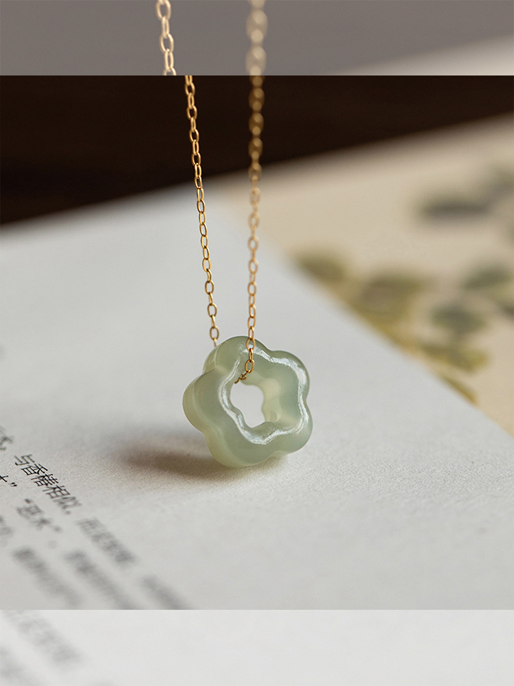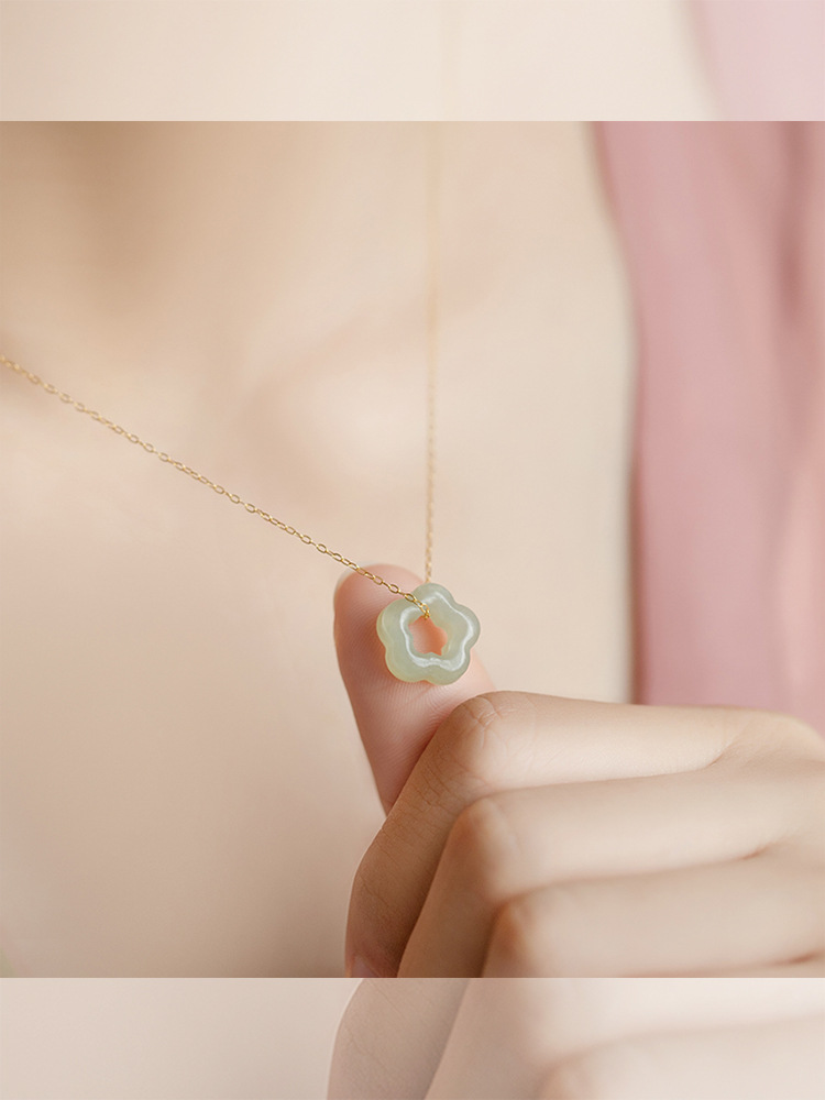 仿和田玉梅花吊坠女士锁骨链子镂空精致极细项链复古风气质礼物