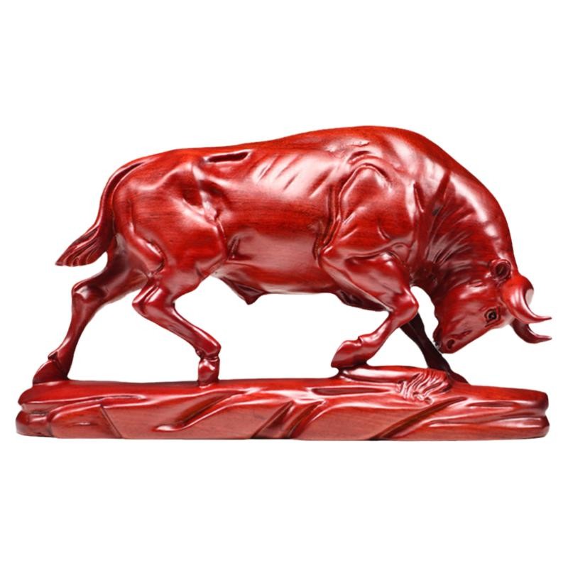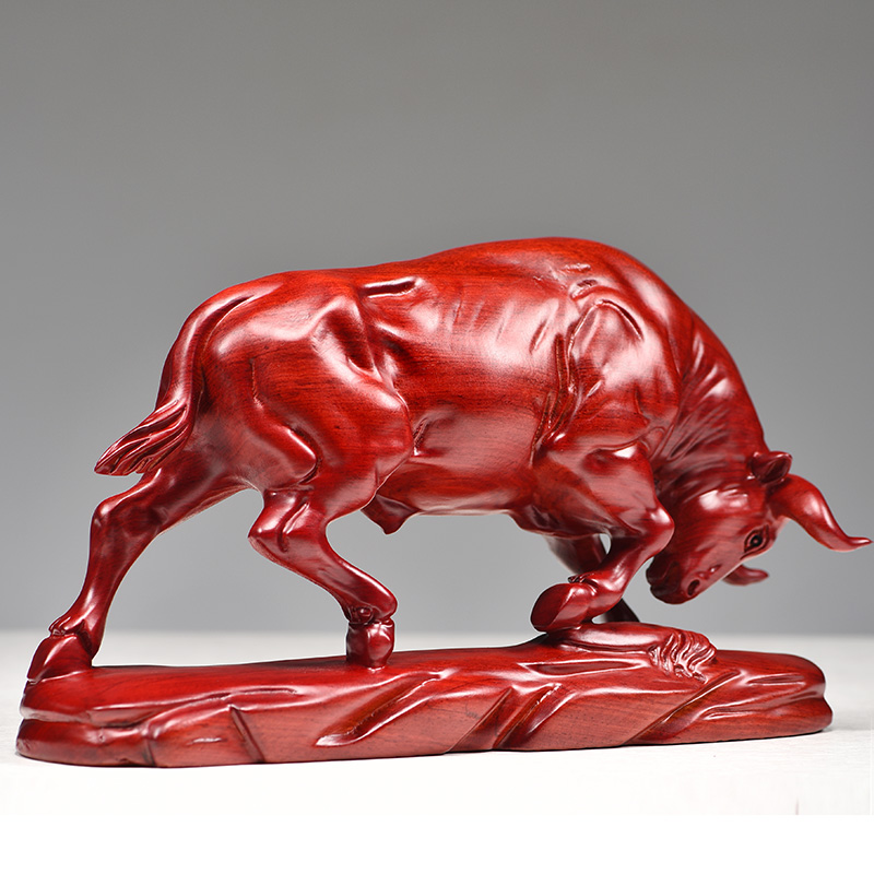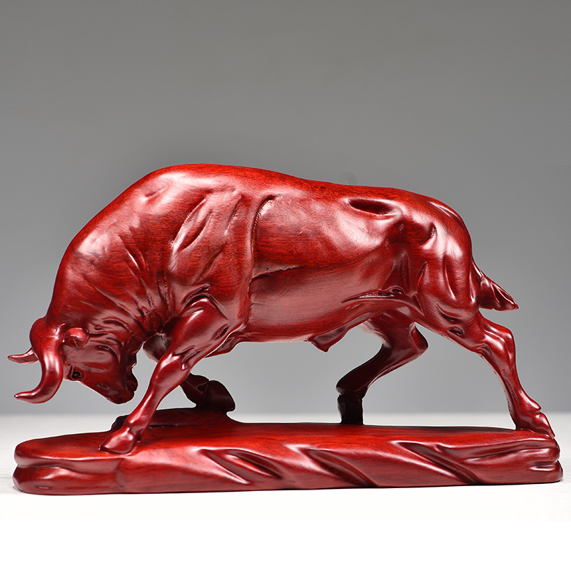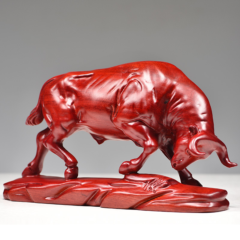 红色木质牛摆件工艺品实木雕刻拓荒牛开拓牛吉祥物家居桌面装饰品