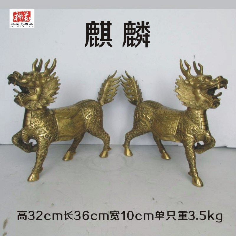 纯铜站式送子麒麟驮宝背书驼元宝黄铜一对童O男童女铜摆件金色神
