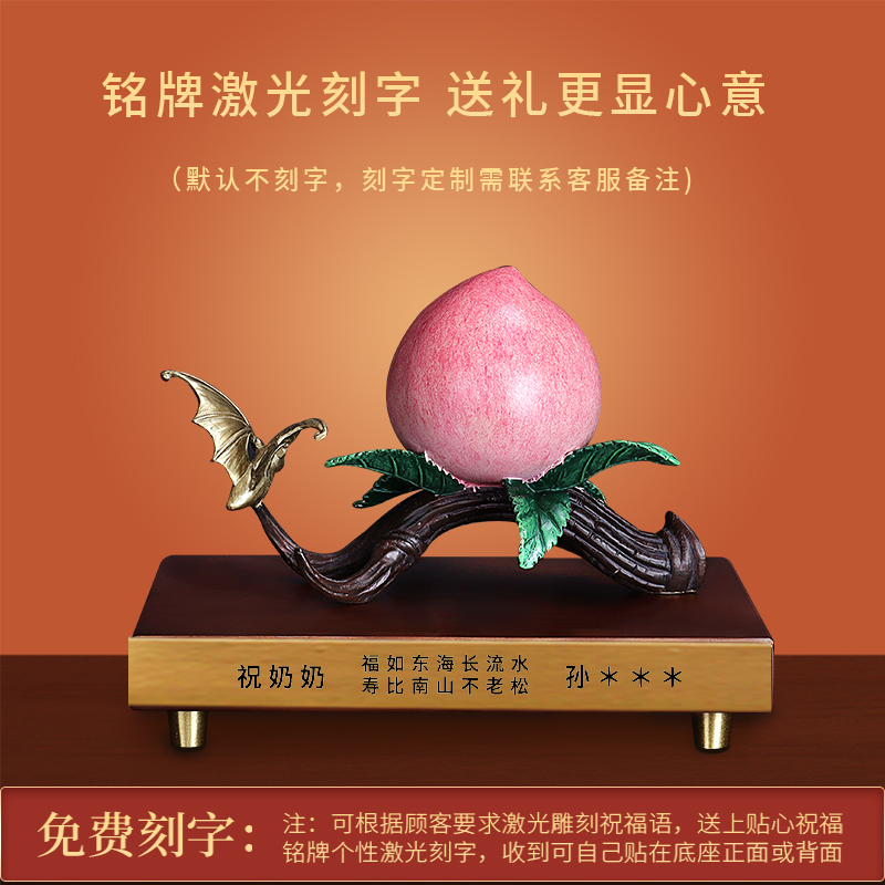 《福寿绵长》全铜寿桃摆件贺寿生日礼物仙桃子送长辈爷爷祝寿礼品