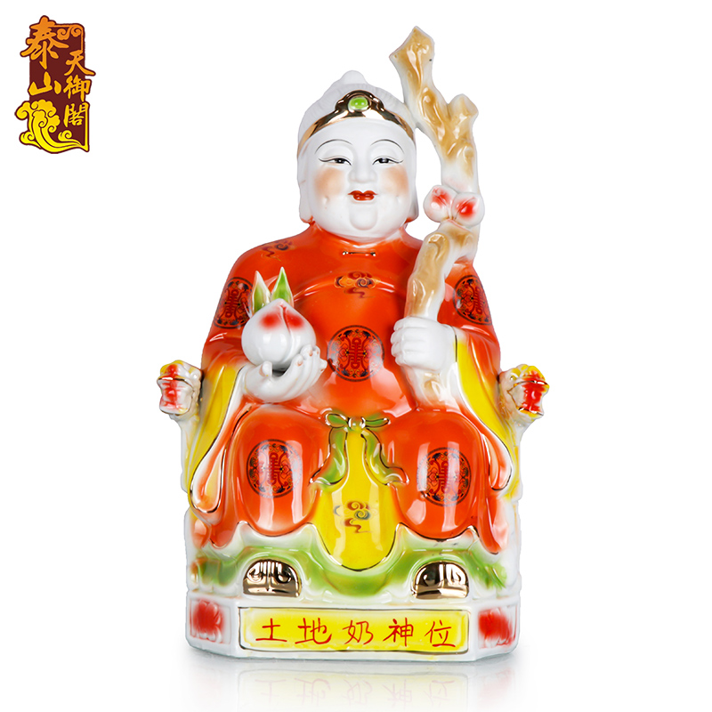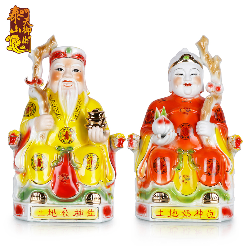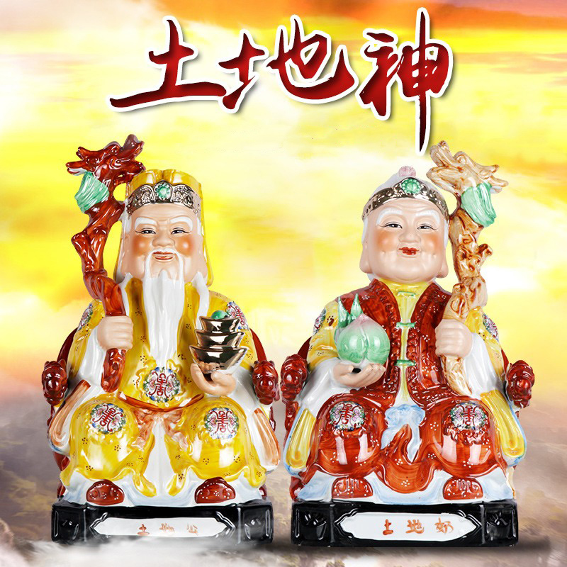 陶瓷土地公土地婆神像摆件土地爷奶佛像整套家用户外小庙供奉用品