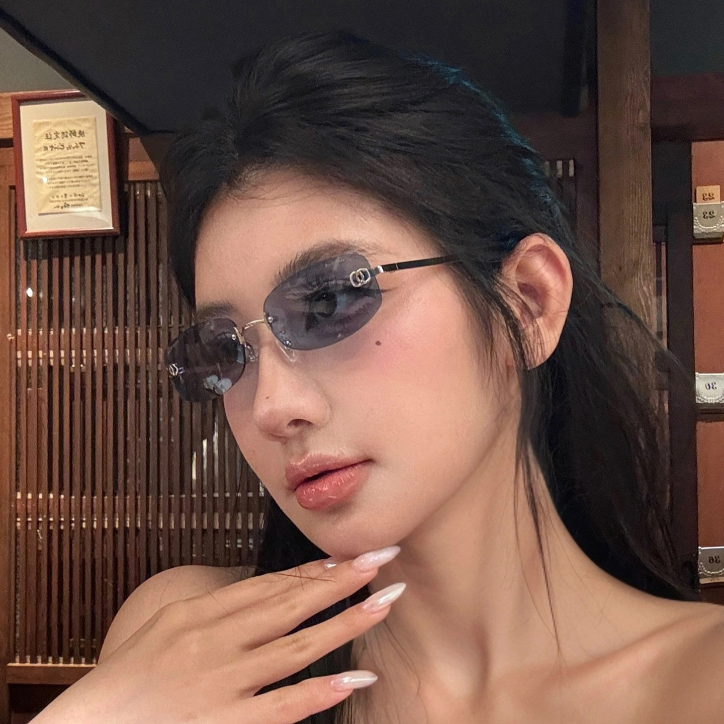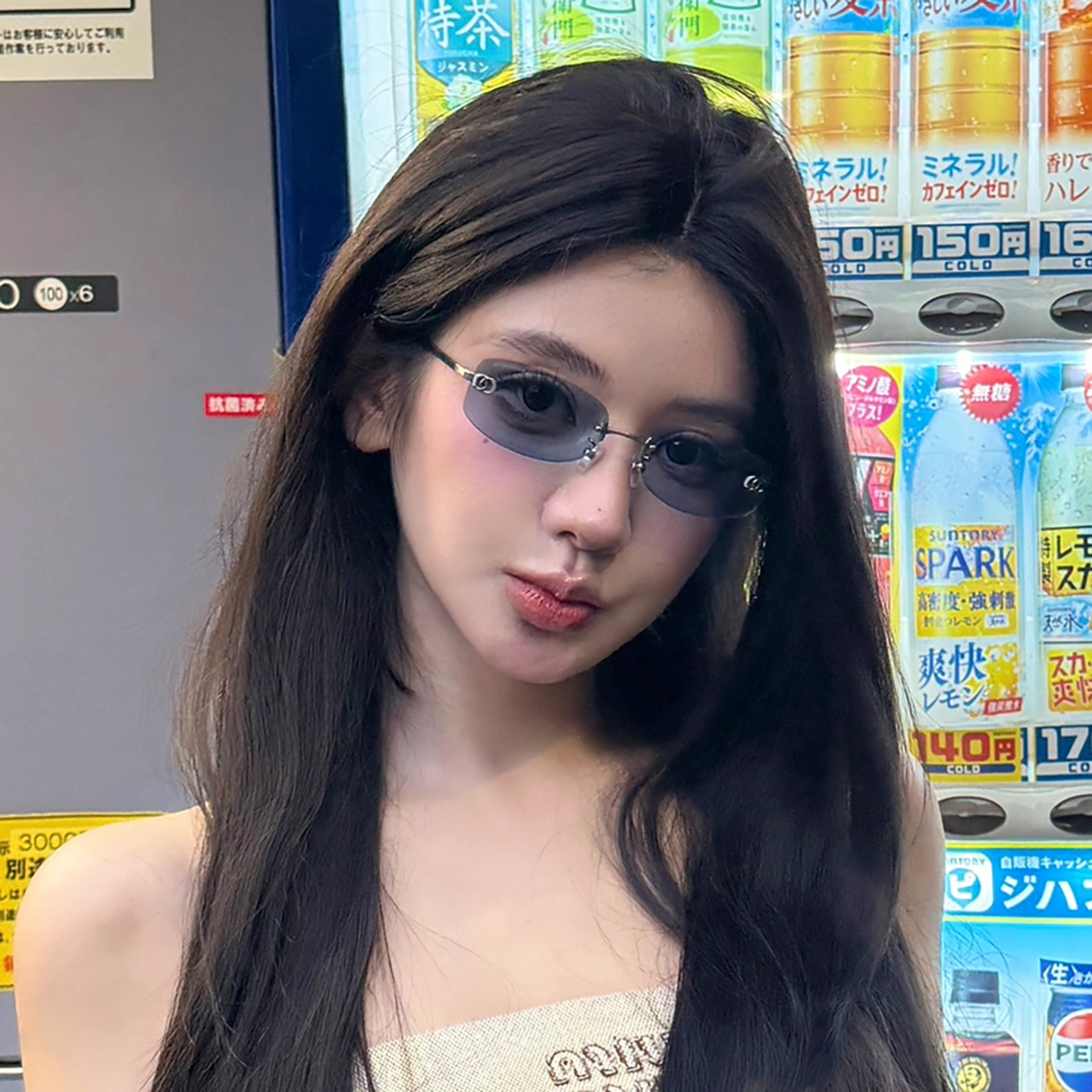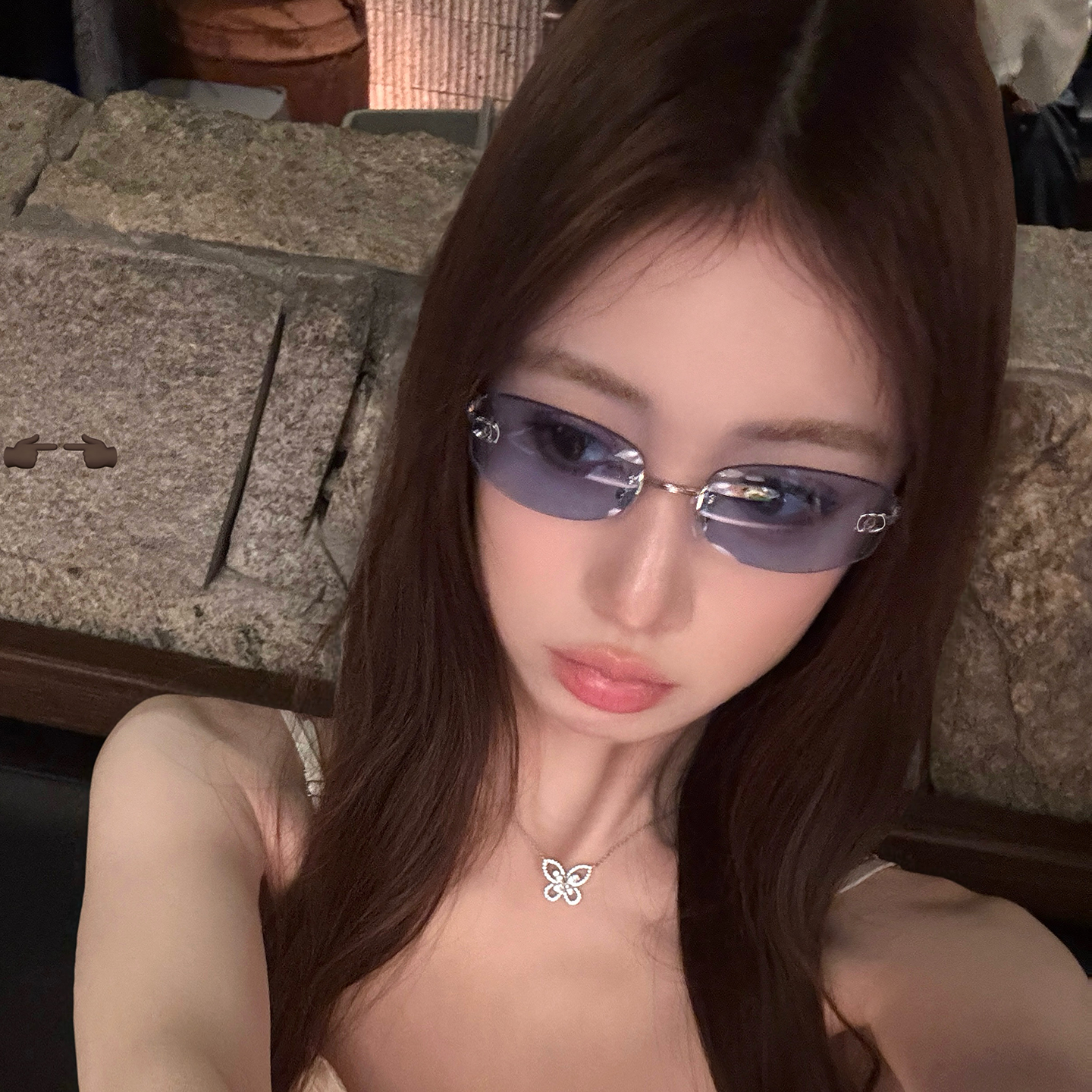 欧美辣妹风无边框蓝色气质太阳镜女个性千禧风Y2K高级感中古墨镜