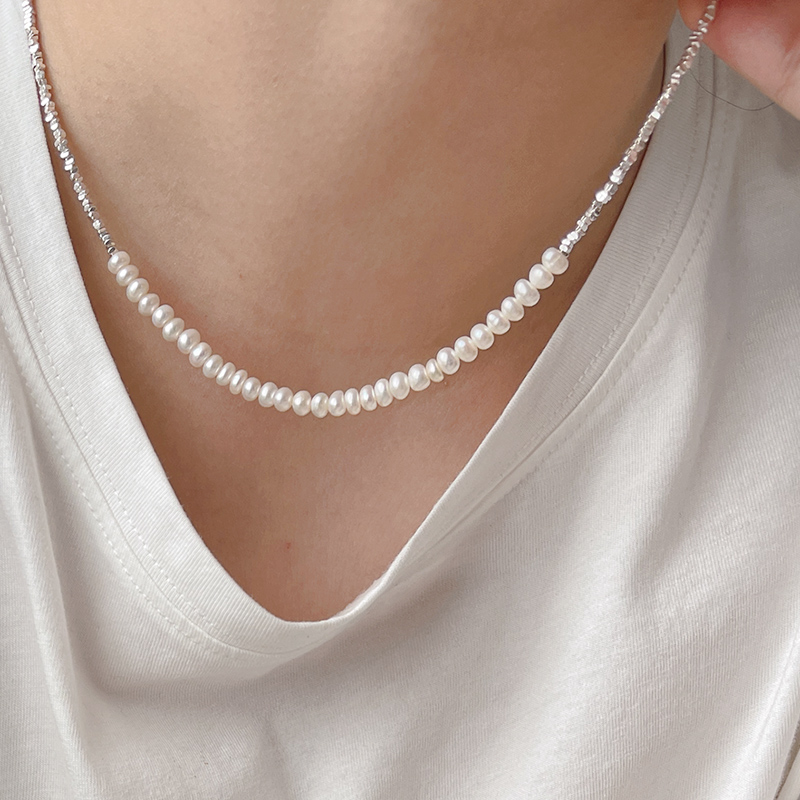 s925纯银高级感碎银子珍珠项链女款2024新款锁骨链轻奢小众设计潮