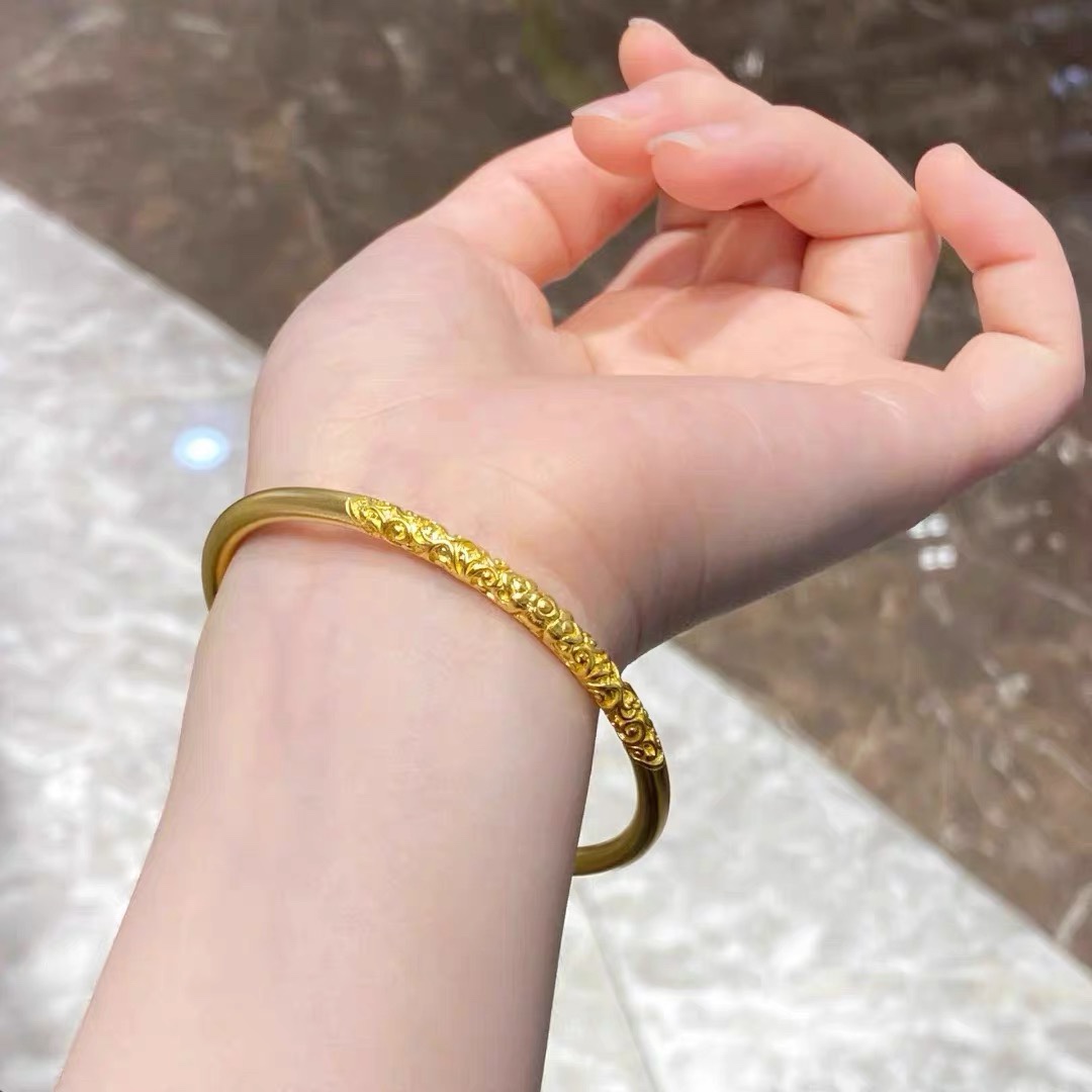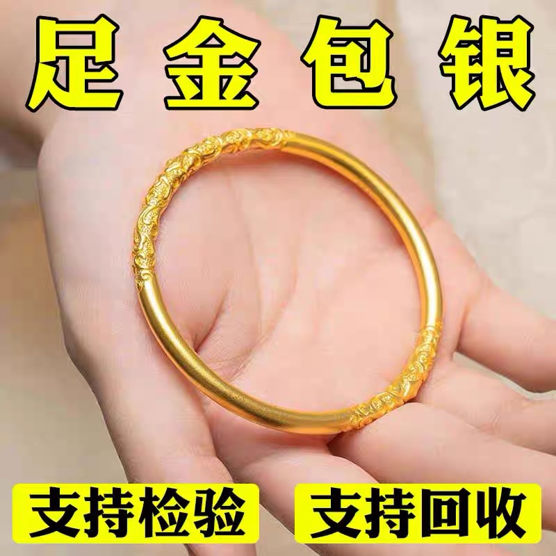 足金包银手镯女款素圈古法传承仿真黄金镯子实心不掉色999可回收