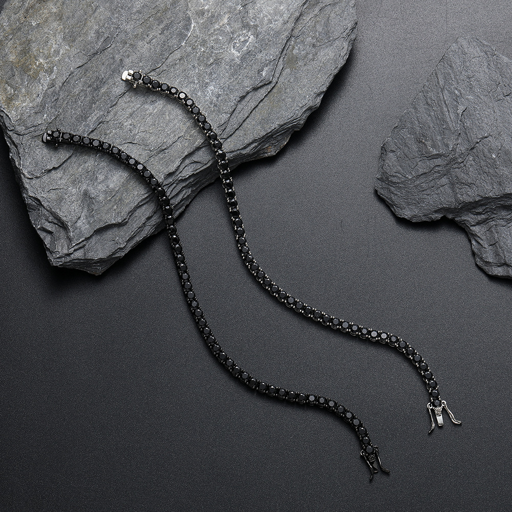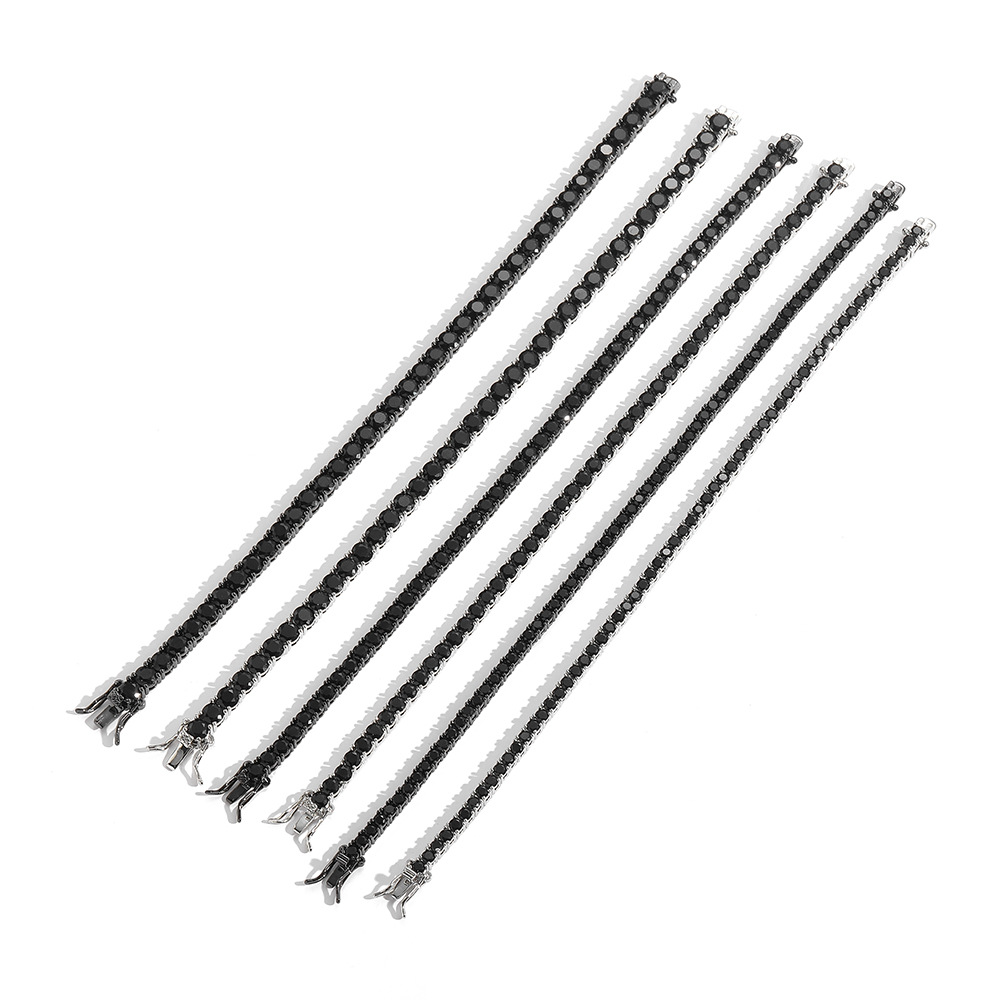 ICE BLING 黑色锆石黑钻网球手链 纯黑色小众设计黑金3 4 5 MM宽