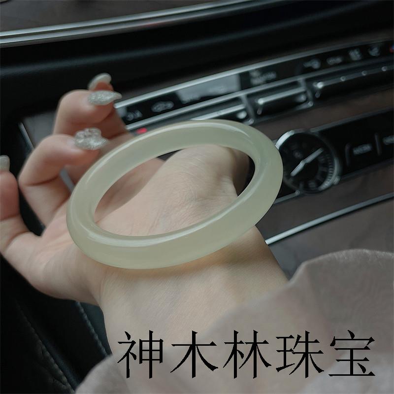 和田玉青海料青白玉镯子冰种晴水底美人条圆条玉石手镯女款高级感