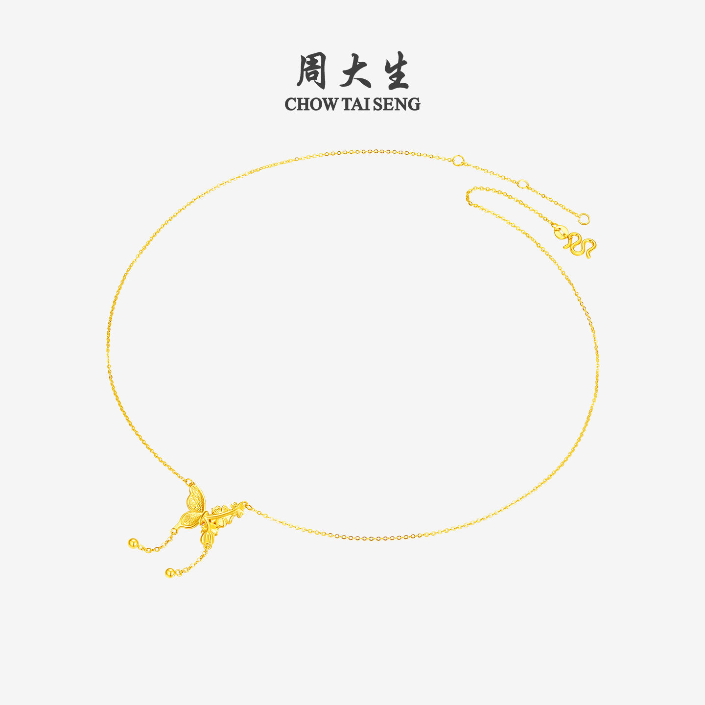 圣诞礼物周大生黄金项链女足金蝴蝶花朵锁骨套链圆珠吊坠送女朋友