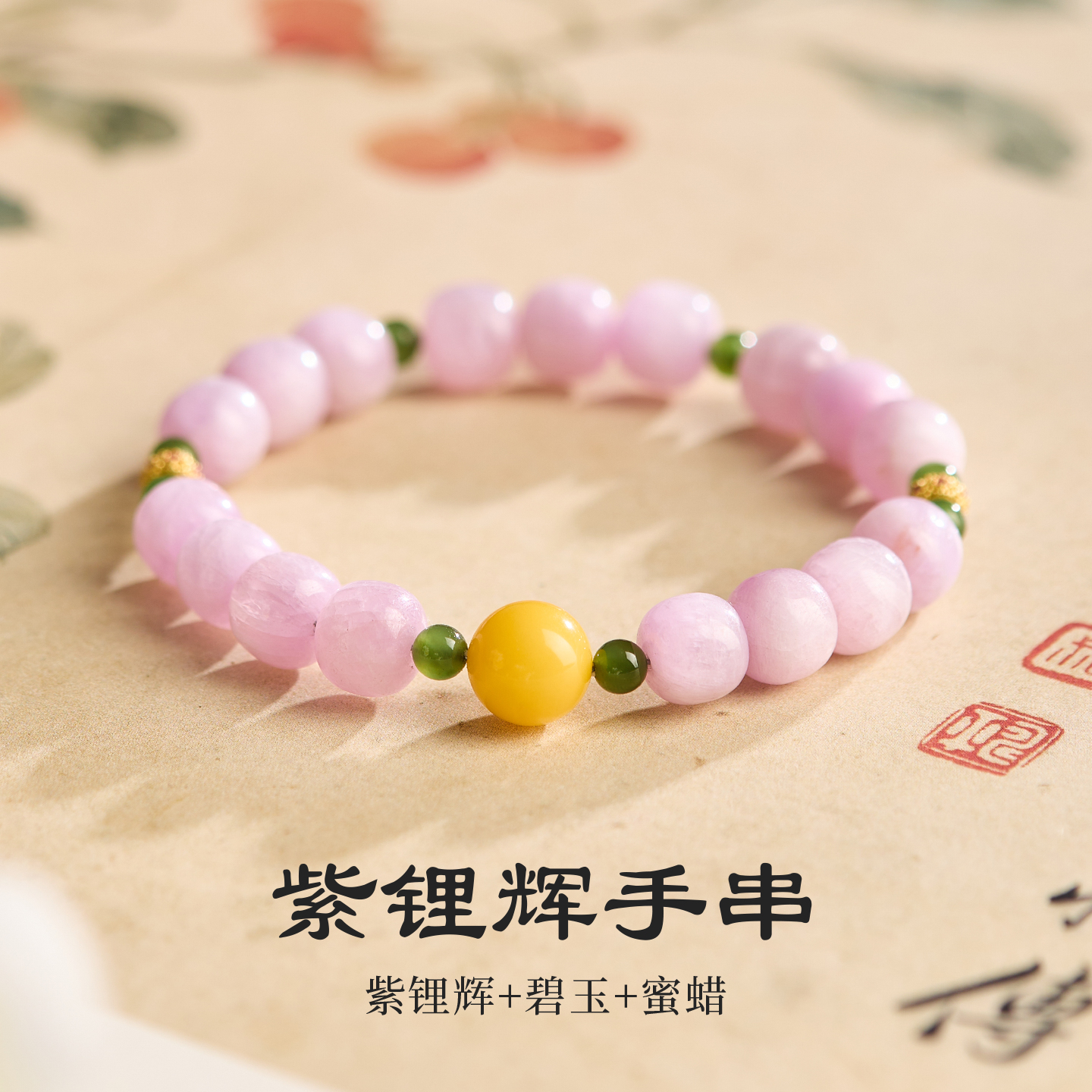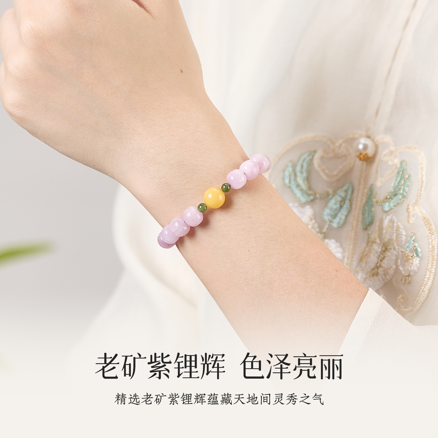 紫锂辉手串女老型珠桶珠新中式串珠手饰小清新情绪稳定多宝手饰品
