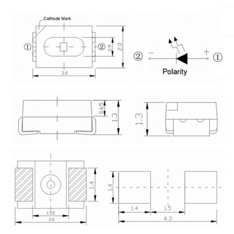 3020反极黄色超高亮LED发光二极管光源用于灯条灯带应用1000MCD