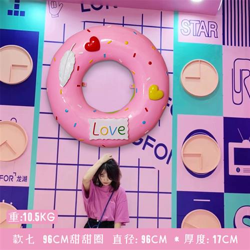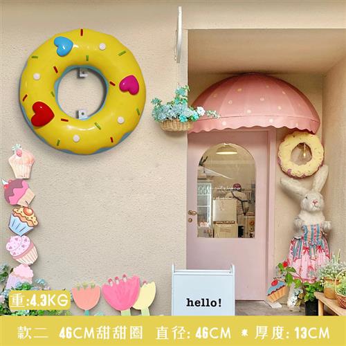 网红仿真卡通甜甜圈模型雕塑壁挂甜品蛋糕店奶茶店门头玻璃钢装饰