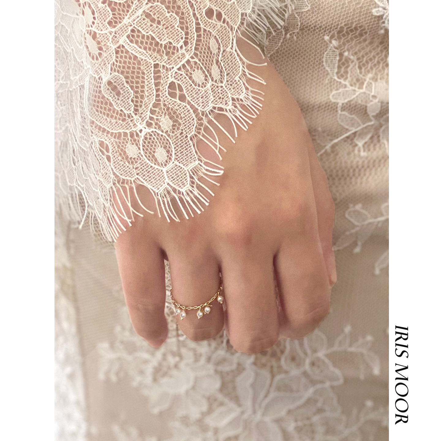 IRIS MOOR 浅粉蓝宝石14K金细链戒指宫廷复古珍珠指环叠戴可调节