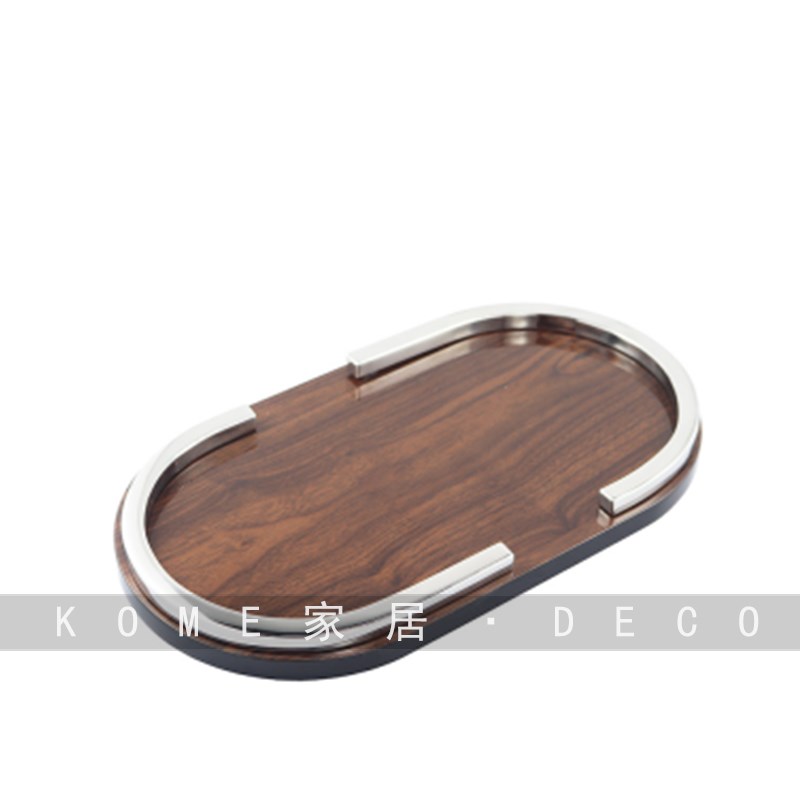 简约现代皮革实木托o盘摆件样板房客厅餐桌酒店接待处桌面果盘装
