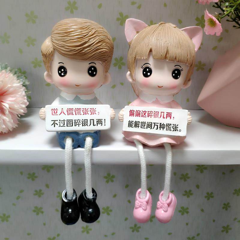 创意励志ins吊脚娃娃玄关置物架装饰品桌上小摆件奶茶童装店摆设
