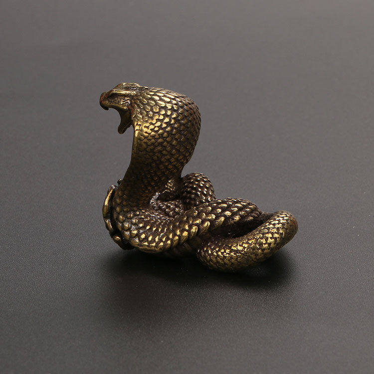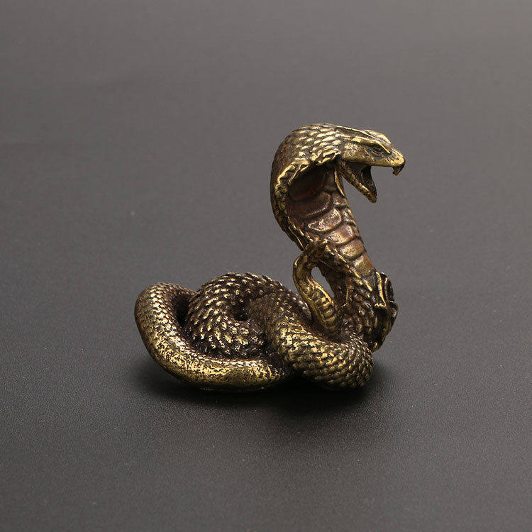 仿古铜蛇小摆件纯铜眼镜蛇招财十二生肖蛇镇纸茶宠桌面家居装饰品