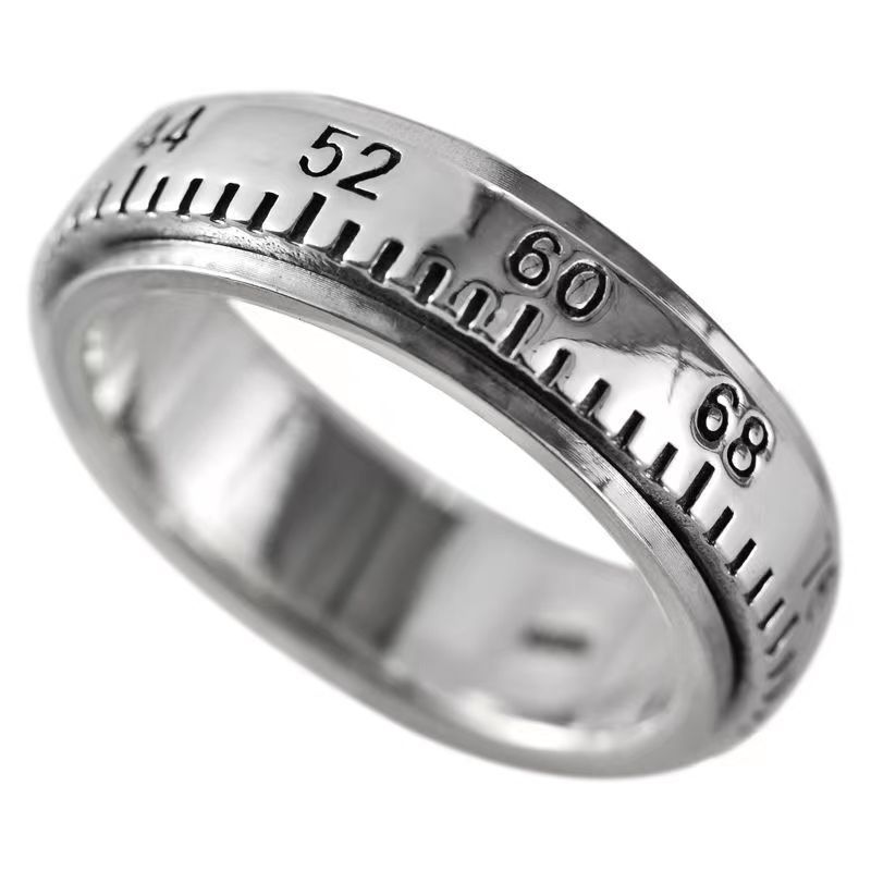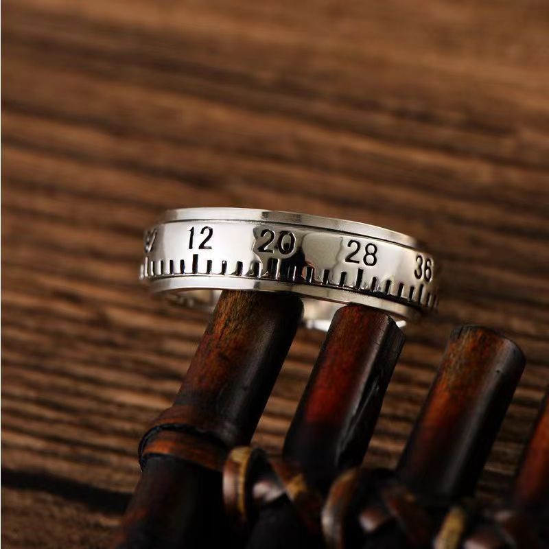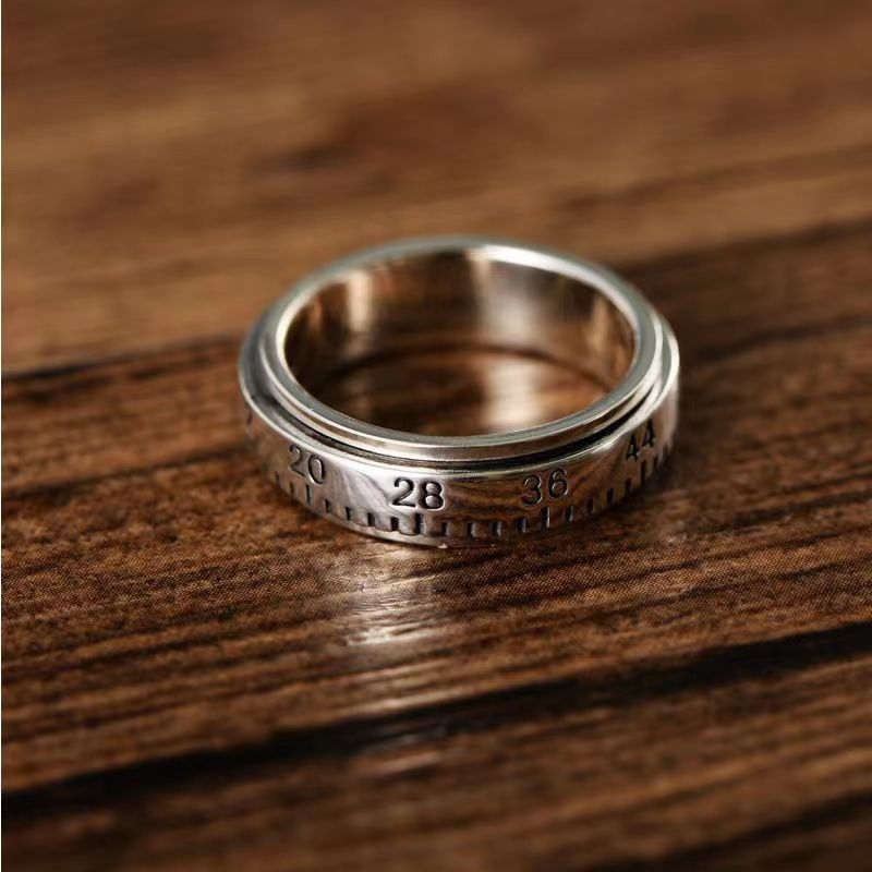 s999纯银个性男女潮流刻度指环可转动时尚情侣简约旋转解压食指环
