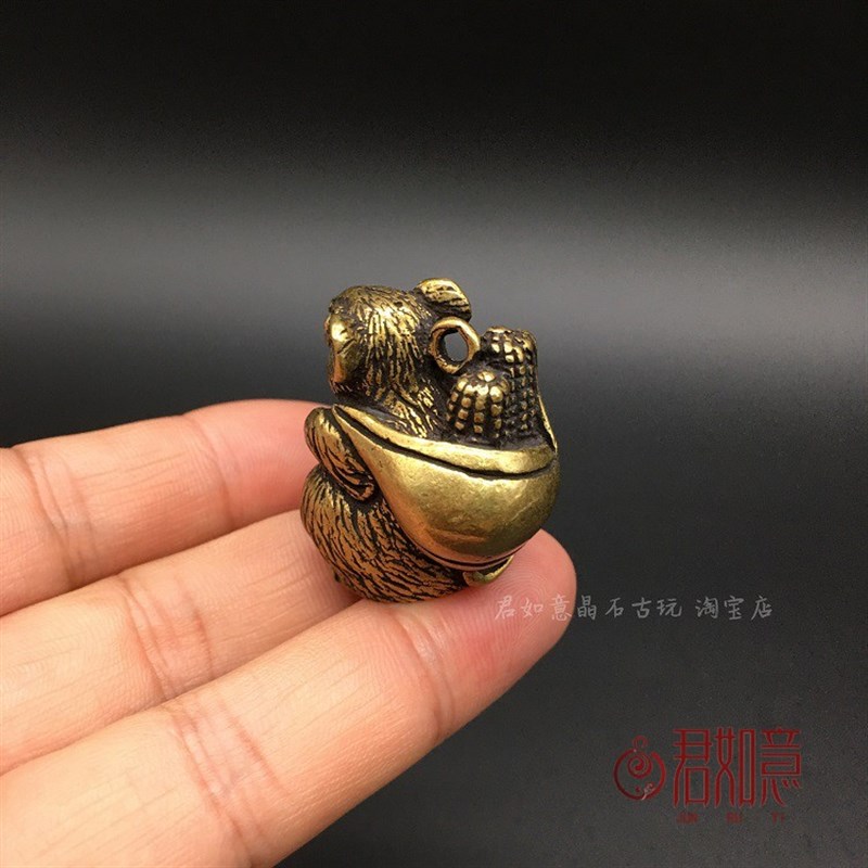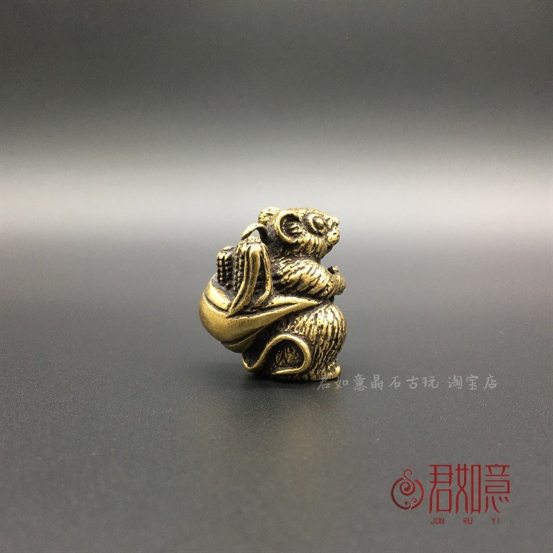 黄铜生肖小老鼠摆件迷你玉米铜老鼠可爱福鼠挂件扣