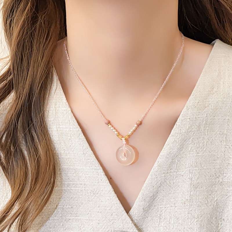新中式玉髓平安扣编织绳项链女吊坠配饰高级感轻奢小众锁骨链颈链