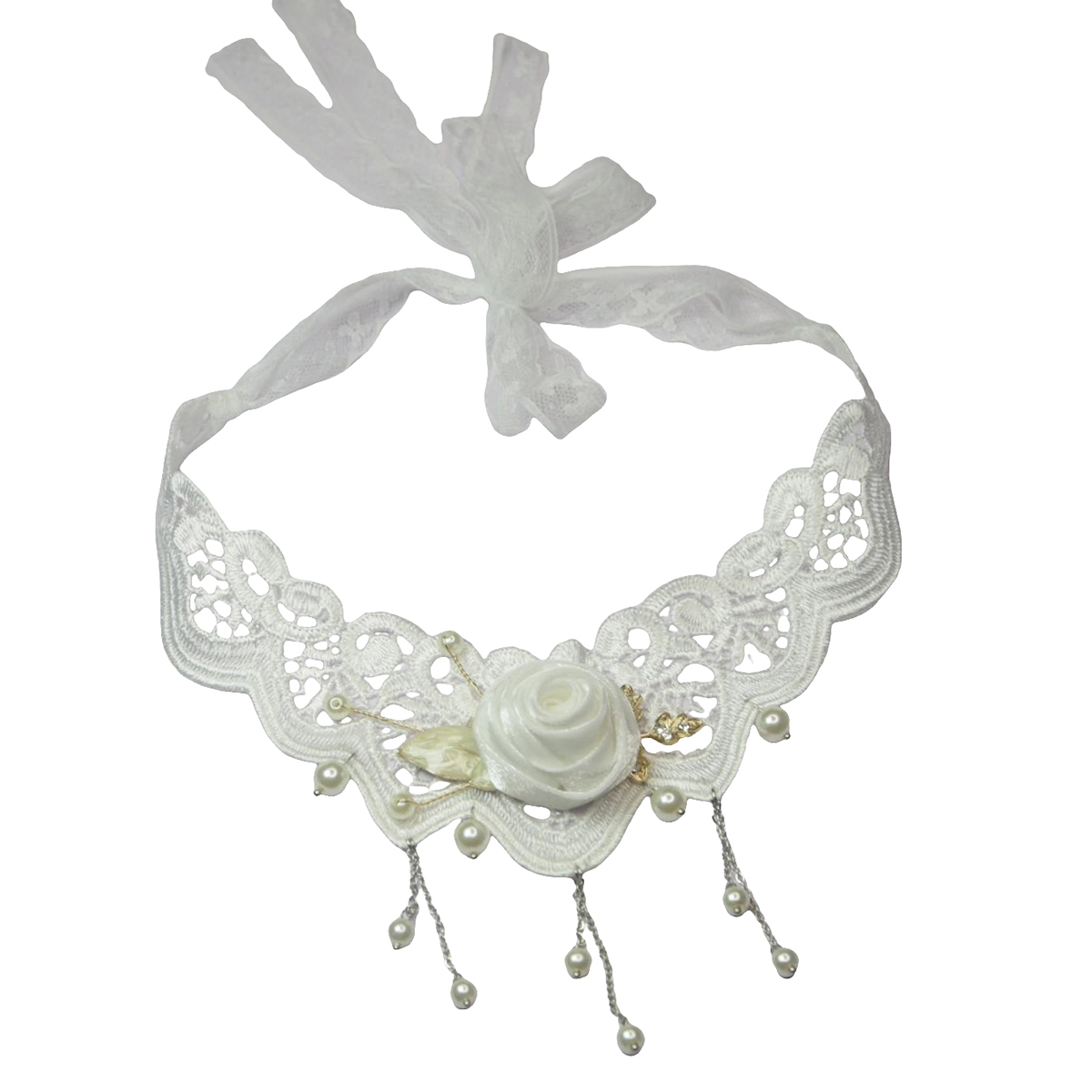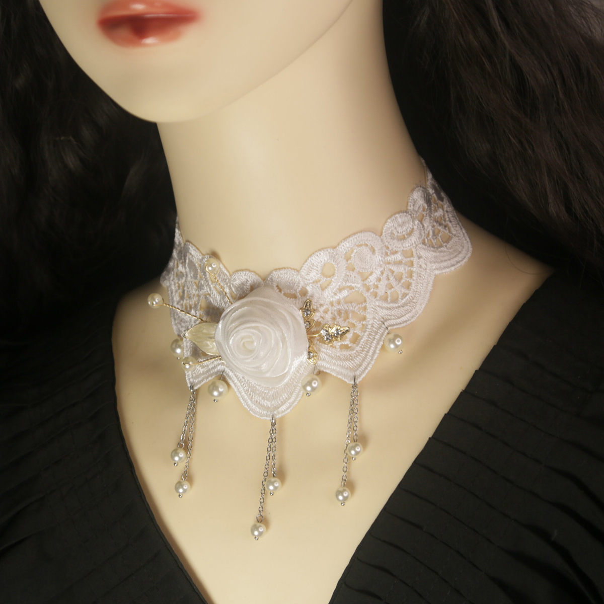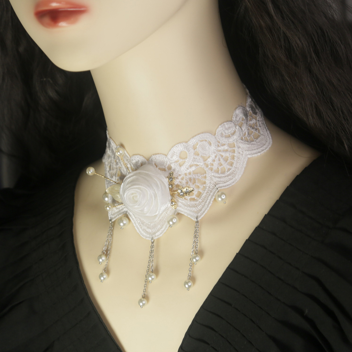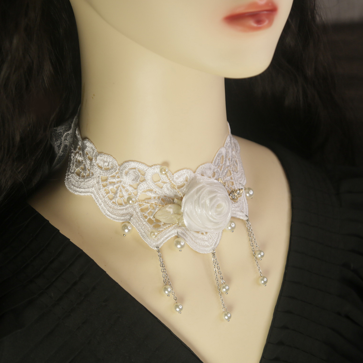 流苏花苞白色原创蕾丝项链花朵颈链复古珍珠锁骨洛丽塔可爱