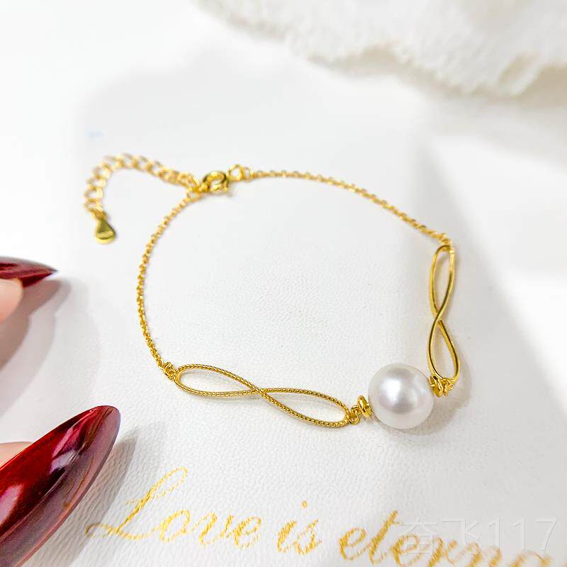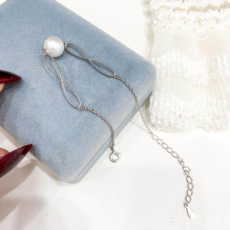 正品DIY配件 托S925纯银珍珠手錬空托 形优雅8字手串手镯半成品手