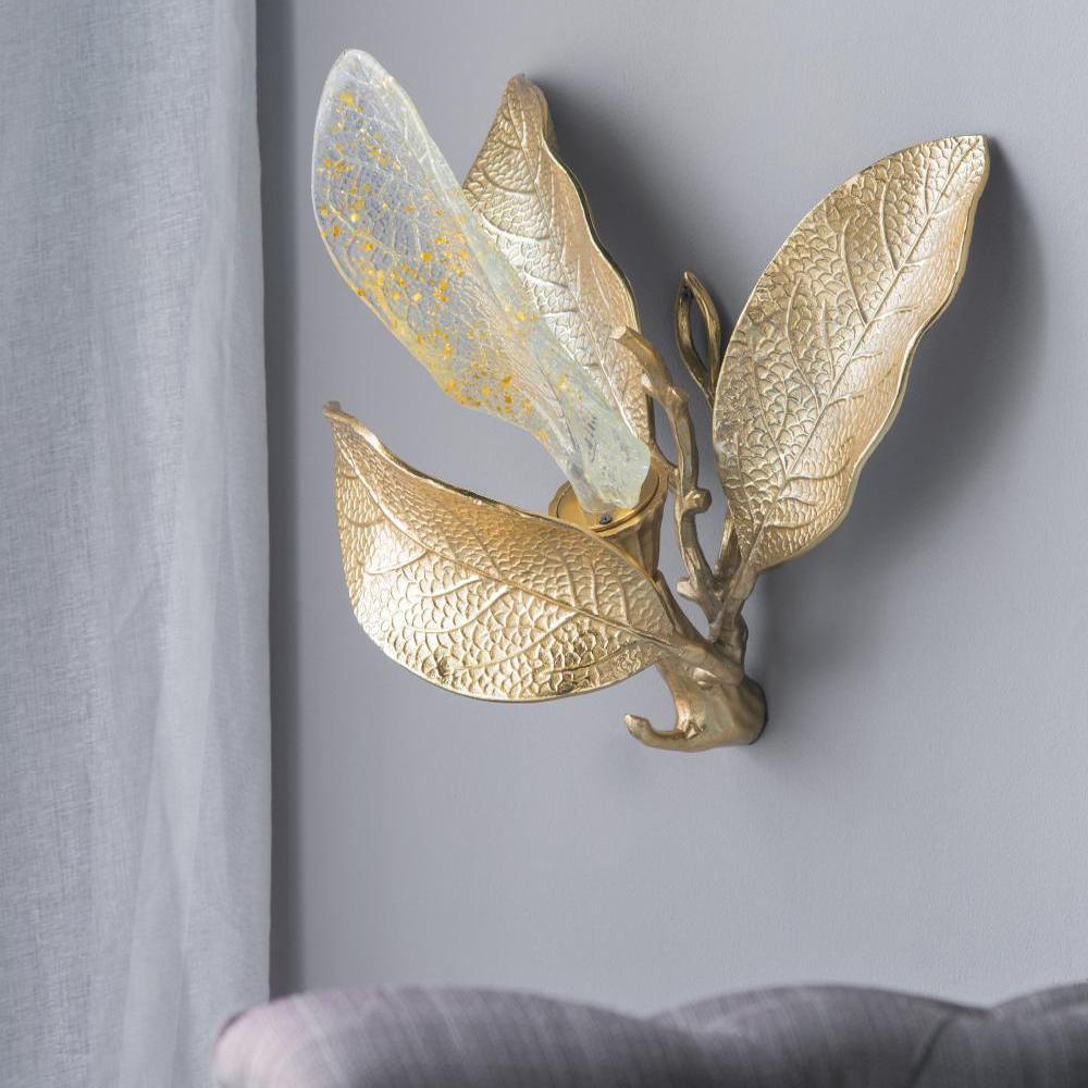 AB HOUSE印度进口铝制琉璃玻璃叶子灯二用壁灯台灯壁饰客厅样板房