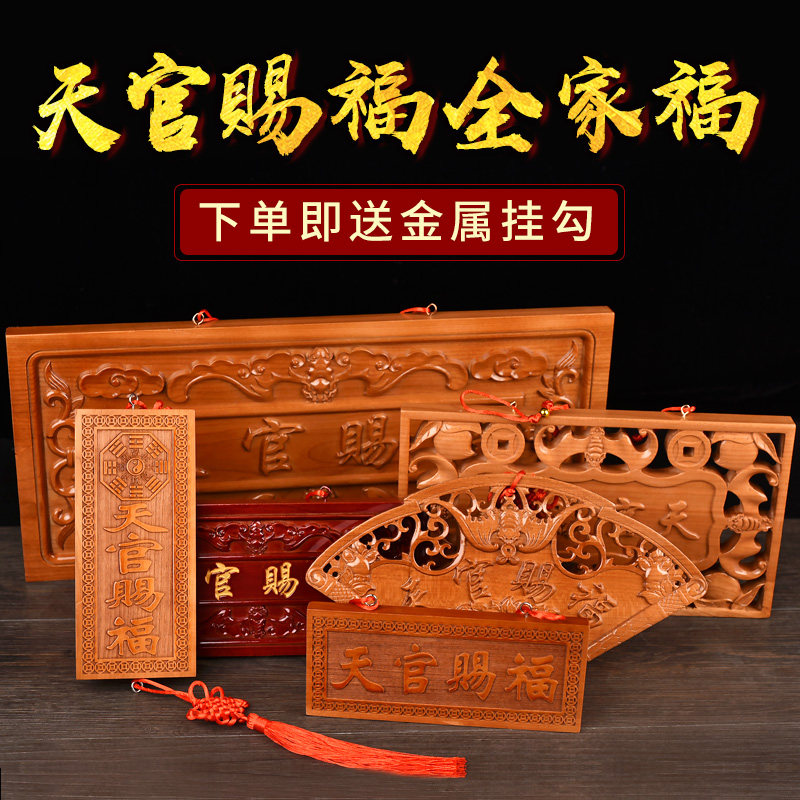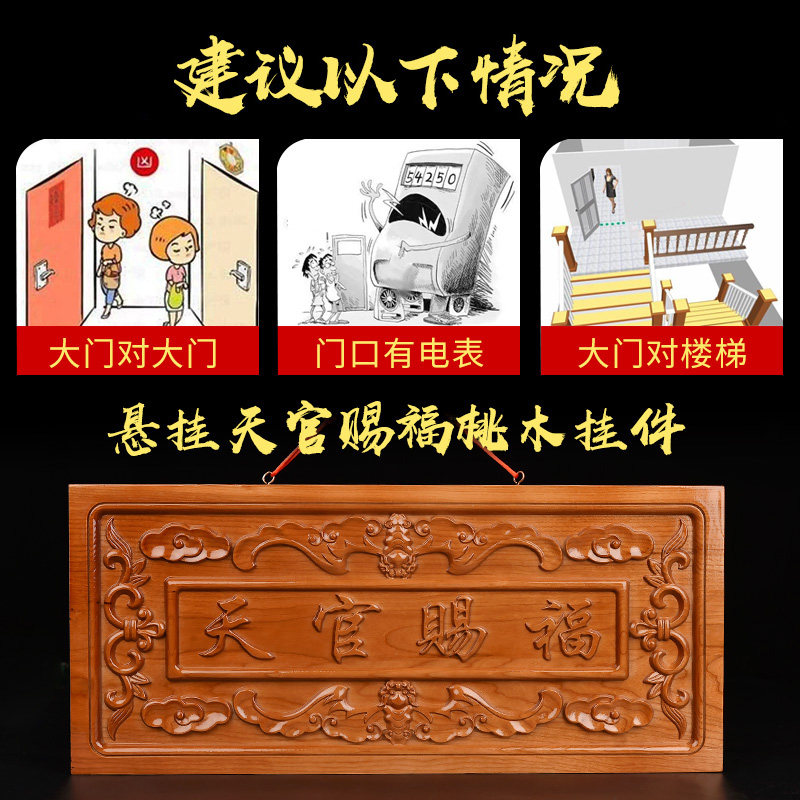 桃木天官赐福挂件鎮宅门牌匾纳福解决门对门家居摆件