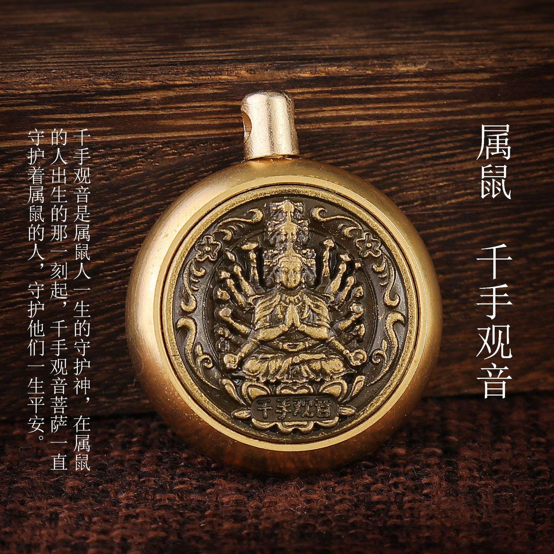 黄铜八大守护神转转钥匙扣挂件十二生肖本命年创意汽车挂件小吊坠