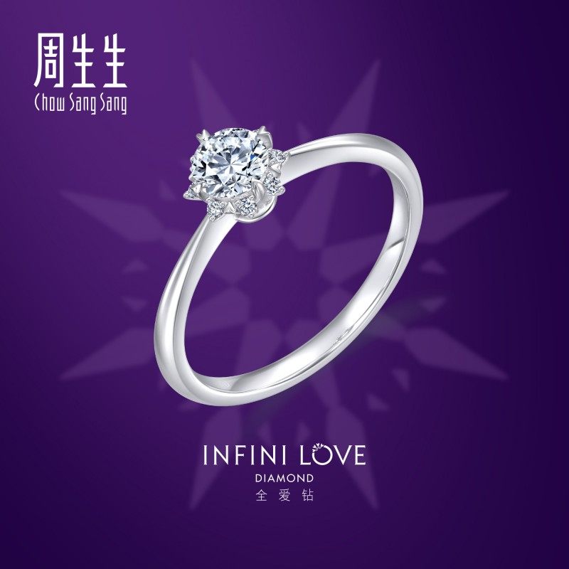 周生生Pt900铂金全爱钻八心八箭钻石戒指结婚求婚钻93099R