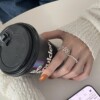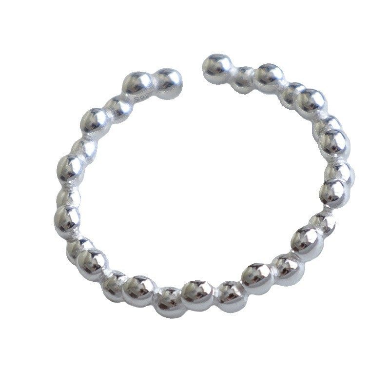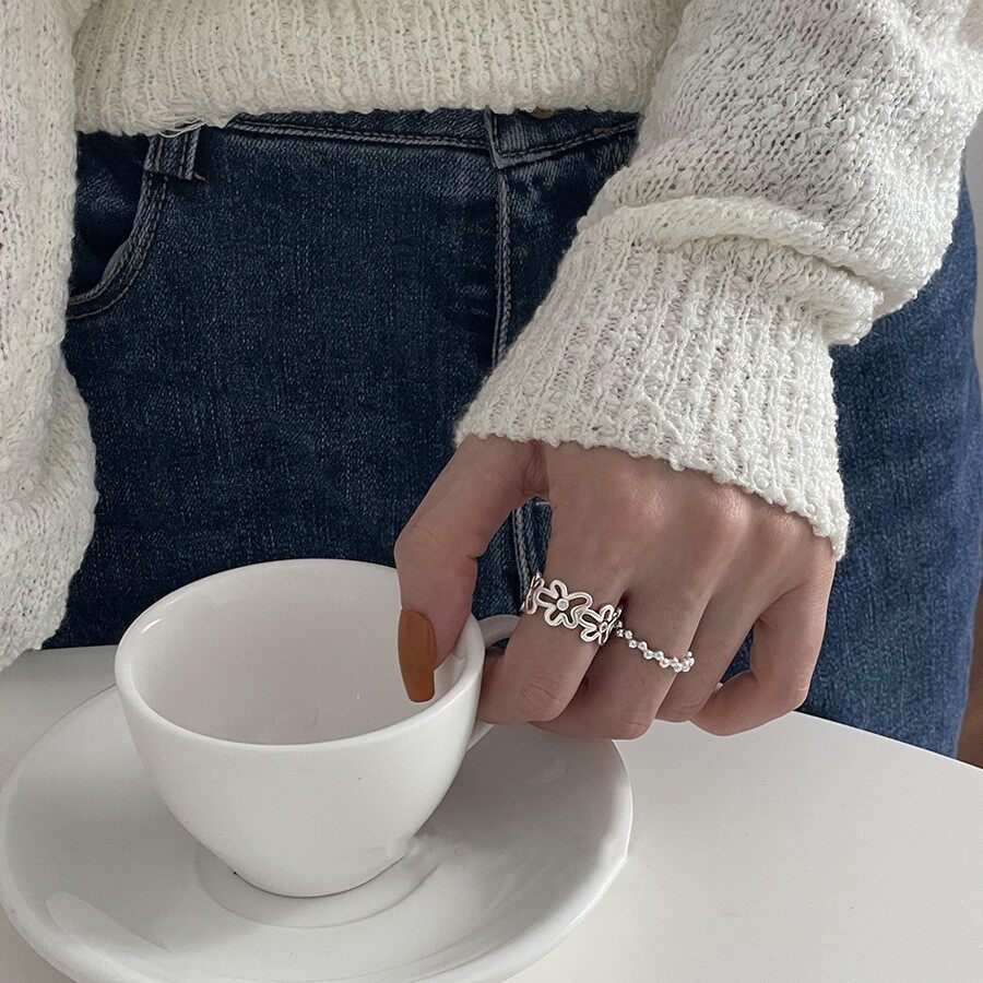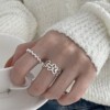 srrmhyn镂空不规则花朵指环小圆珠交错叠戴戒指女小众设计925镀银