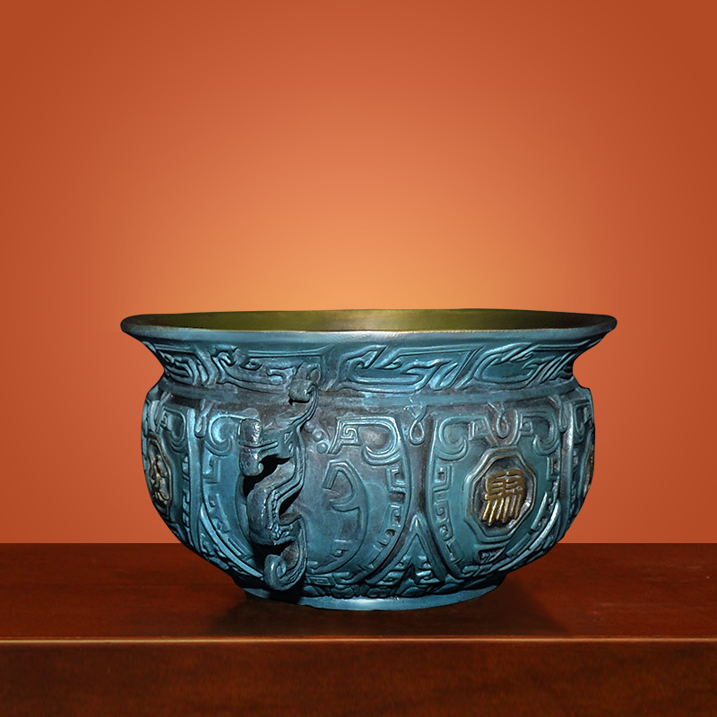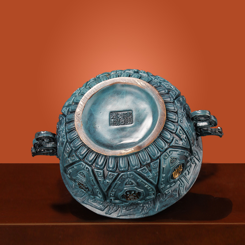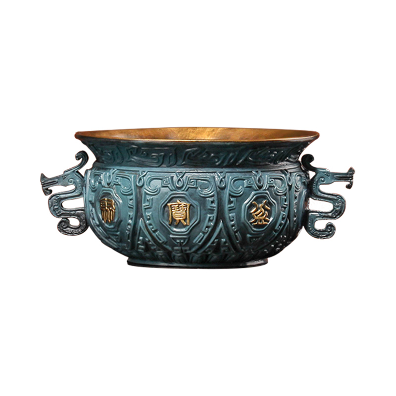 全铜招财龙耳聚宝盆摆件客厅居家玄关装饰聚财乔迁新居铜盆工艺品