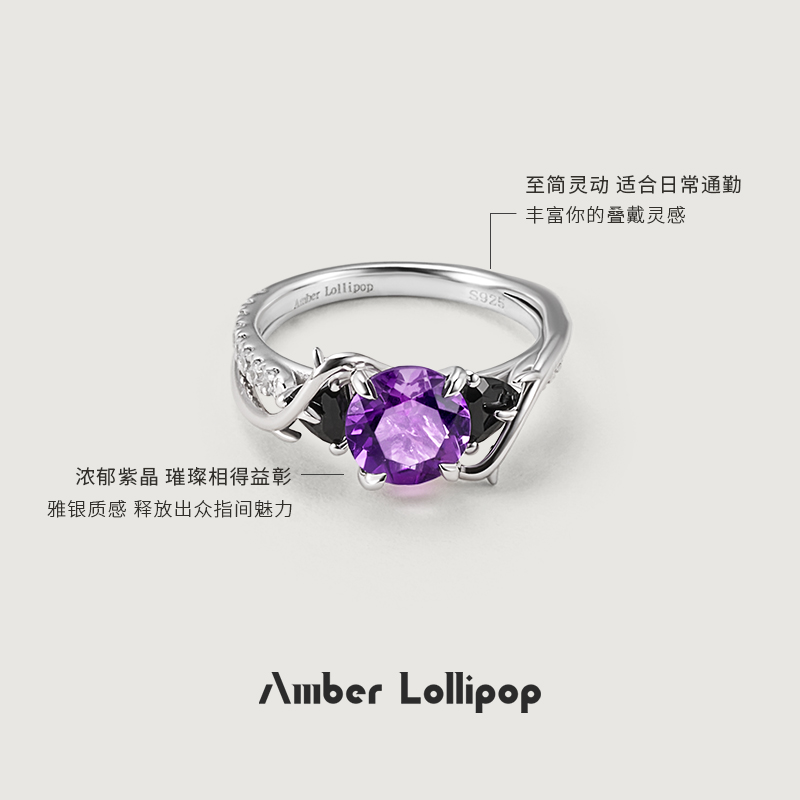 Amber Lollipop紫晶戒指轻奢高级感小众设计食指戒女2025年爆款