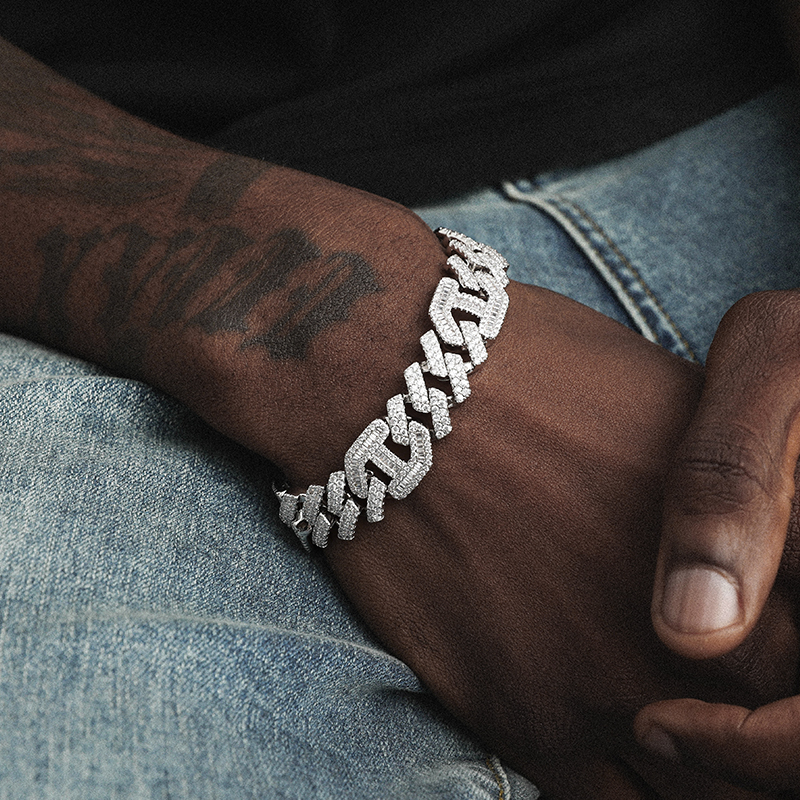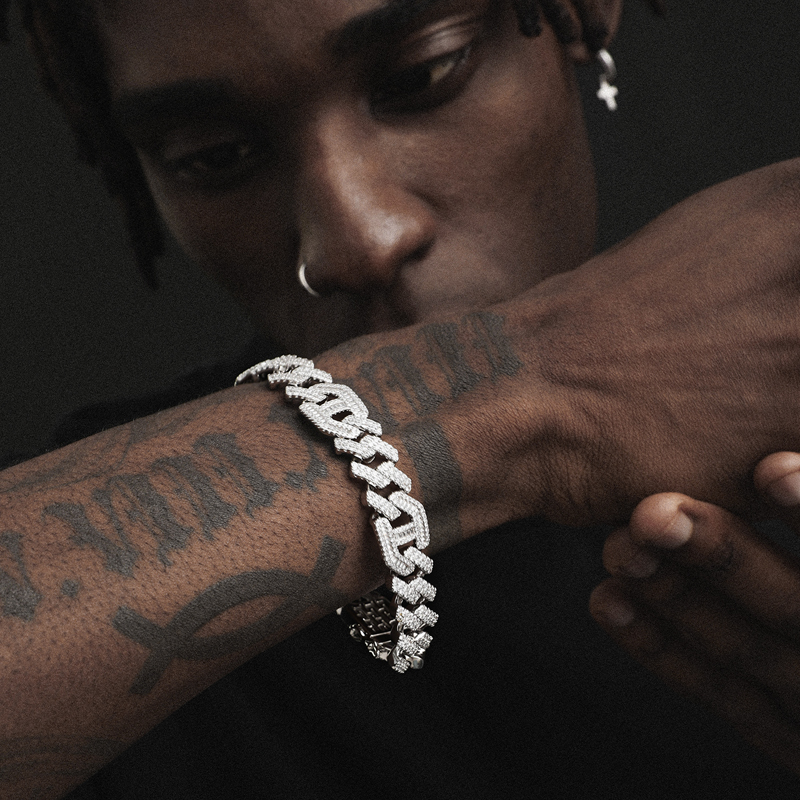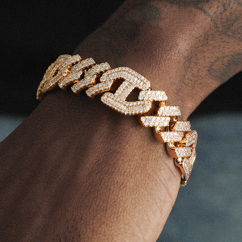 ICE BLING菱形满钻密钻古巴链手链金色嘻哈潮牌锆石cuban chain