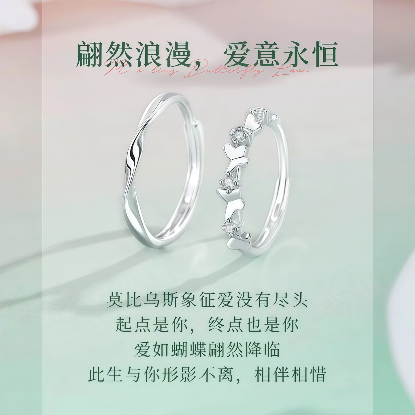 莫比乌斯环蝶恋情侣对戒原创设计小众女轻奢高级感学生党送礼盒