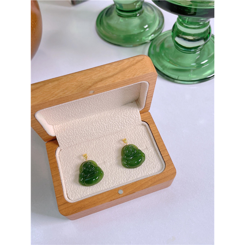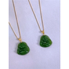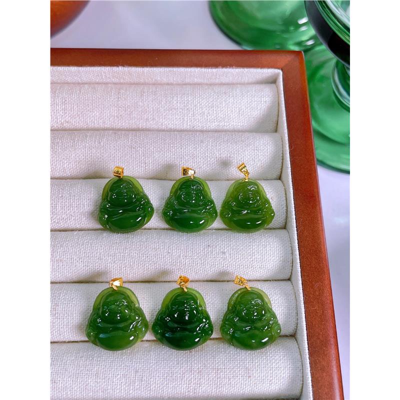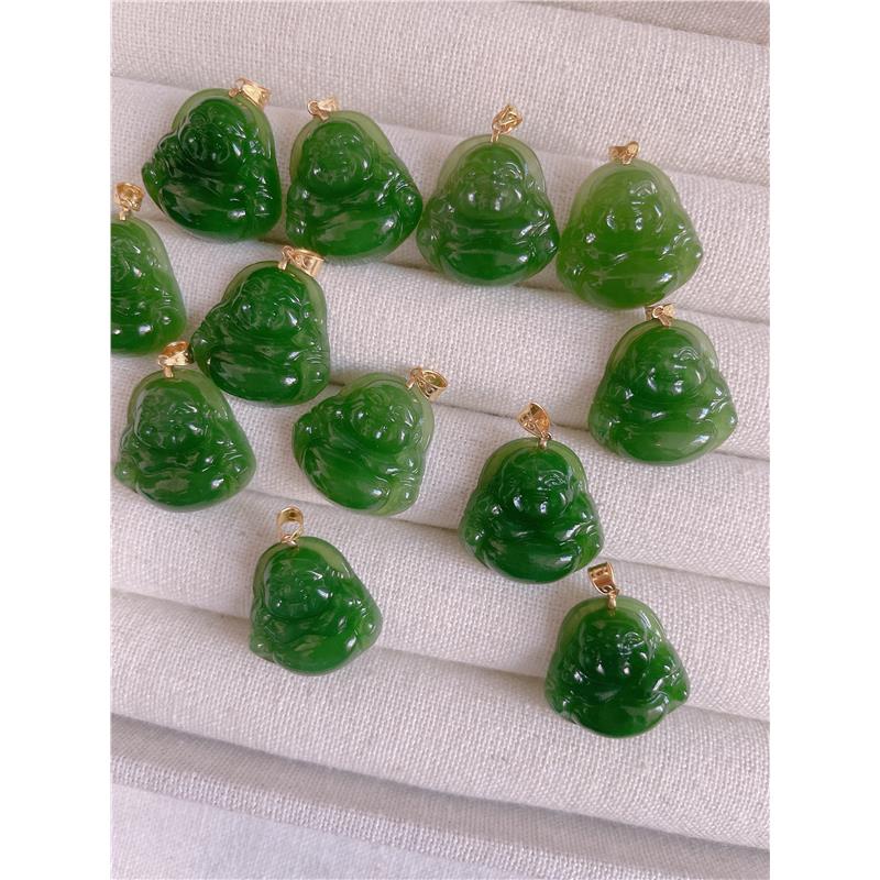 天然新疆和田玉碧玉佛公吊坠女18k金镶玉佛牌弥勒佛笑佛玉坠项链