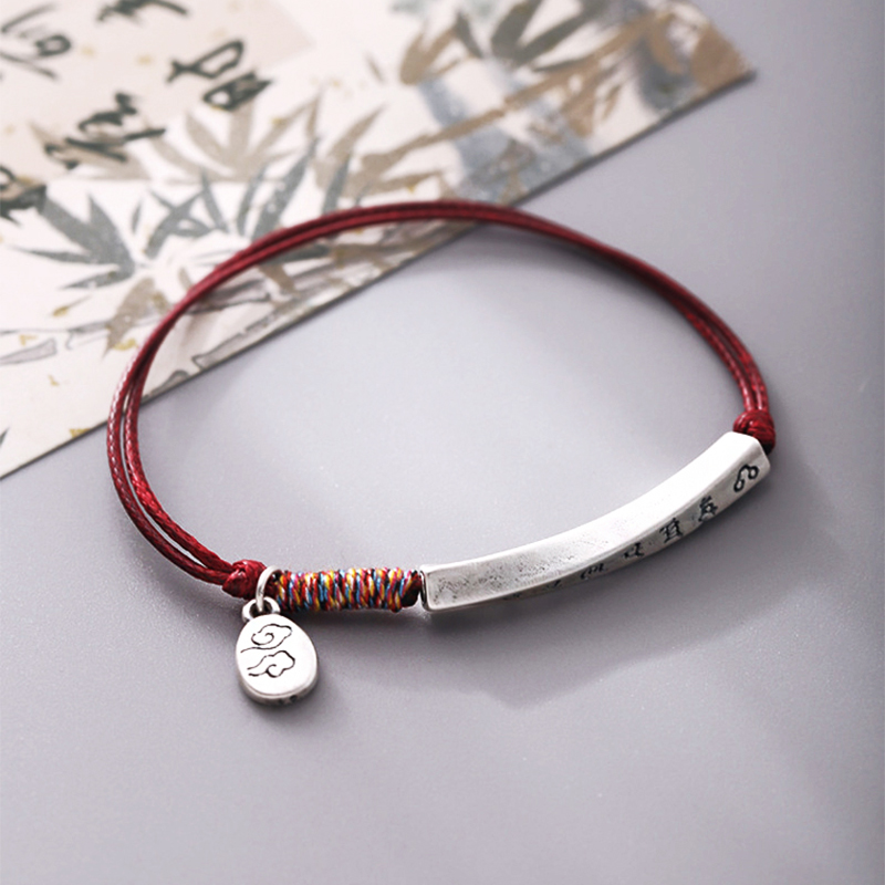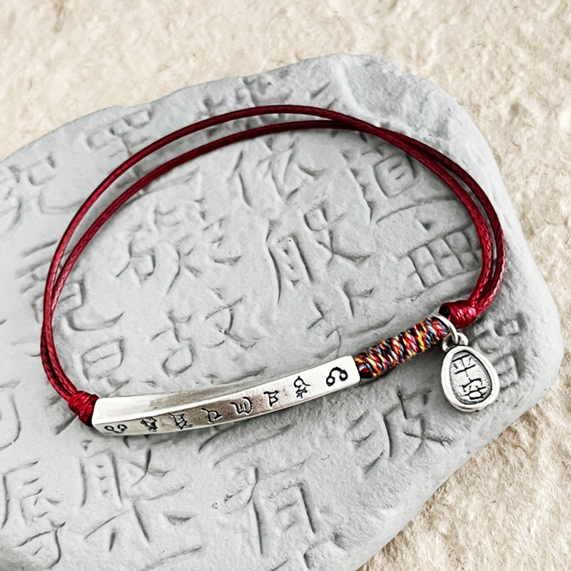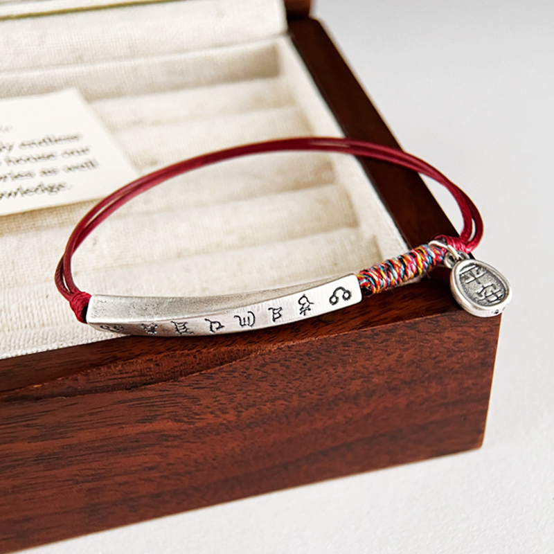 999纯银六字真言红绳手链编织绳新中式转运护身符红色手绳男女款