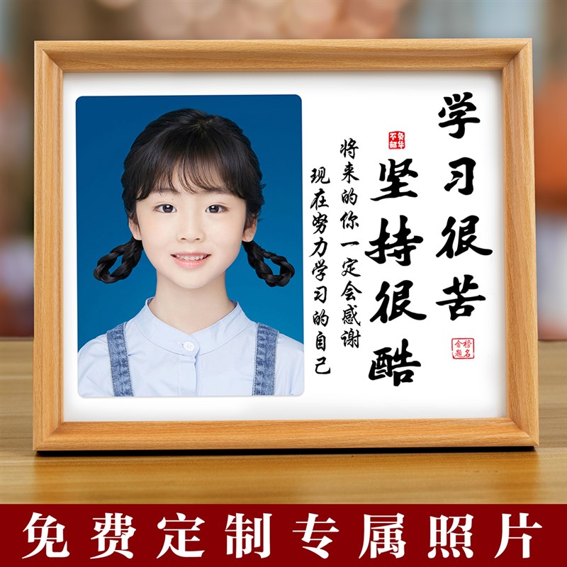 个性定制照片相框摆台学习很苦坚持很酷字画鼓励孩子学生励志摆件
