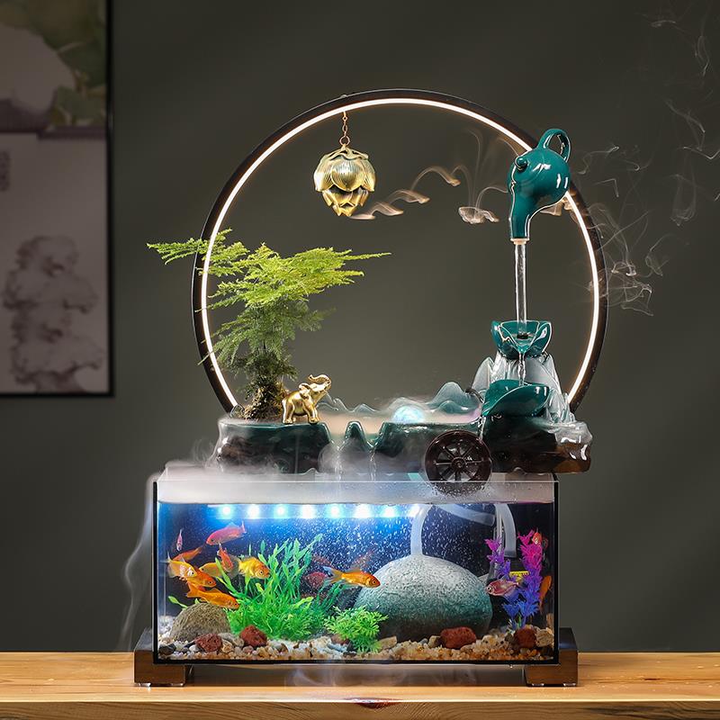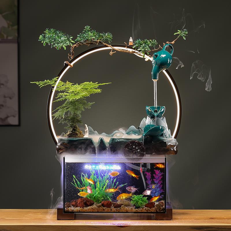 流水摆件办公室桌面鱼缸客厅景观水循环生财鱼缸开 业礼物自带过