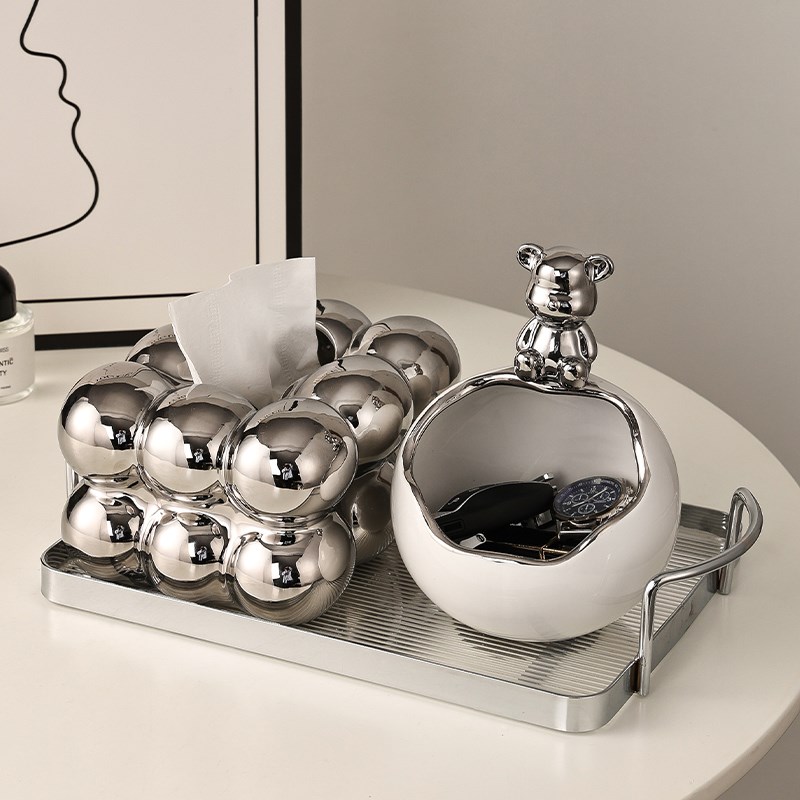 轻奢风现代家用客厅茶几桌面收纳摆件创意前台卡通陶瓷装饰糖果盘